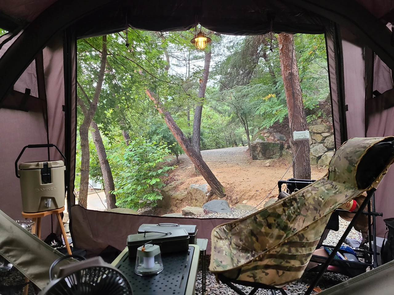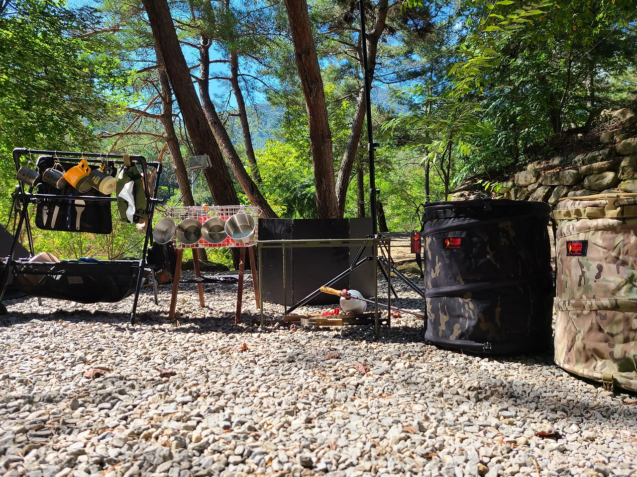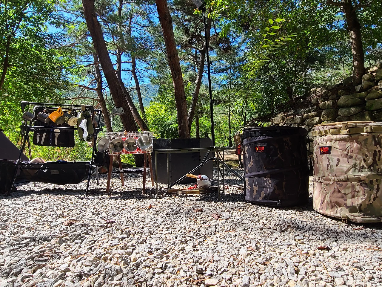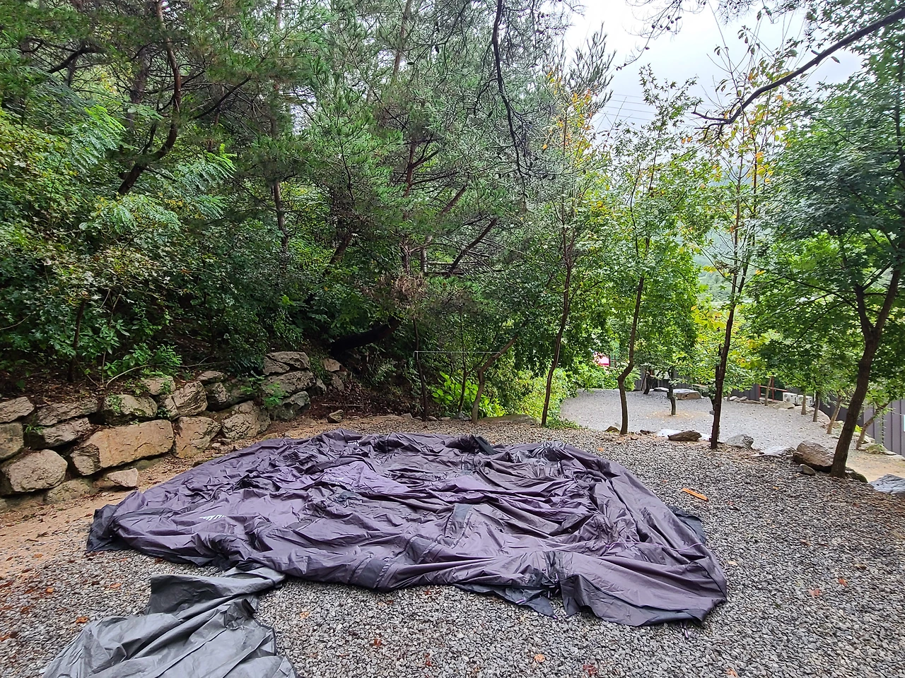 계곡보다는 화장실 이용이 편한 입구 쪽에 있는 단독 사이트로 자리를 정했다.