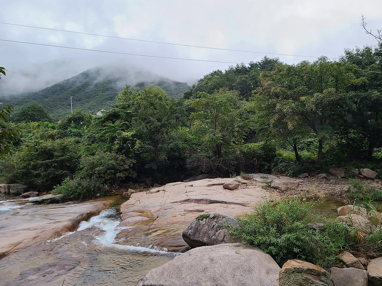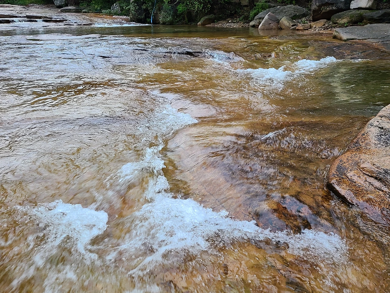 아래로 내려 가보니 물이 지나가면서 만들어진 천연 미끄럼틀과 그 끝자락엔 수심이 깊은 큰 웅덩이가 있었다. 보고만 있어도 시원했고 기분이 상쾌해지고 맑아졌다.