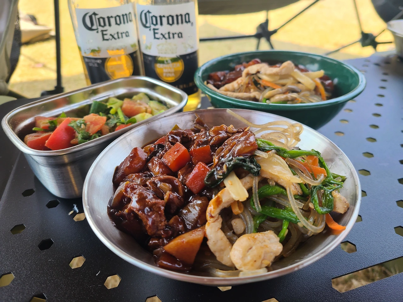 집에서 미리 준비해 온 재료들로 오뚝이 3분 짜장만큼이나 빠르게 만든 짜장 잡채밥과 간식으로 크로플을 준비했다. 농장에 한번 들어가면 아이들이 나오질 않았다. 어른들이 한 번씩 아이들을 데리러 갔지만 모두 실패하고 아이들은 배고플 때 나올 것이라 생각하기로 했다. 어느 때보다 여유롭게 점심밥을 먹었다.