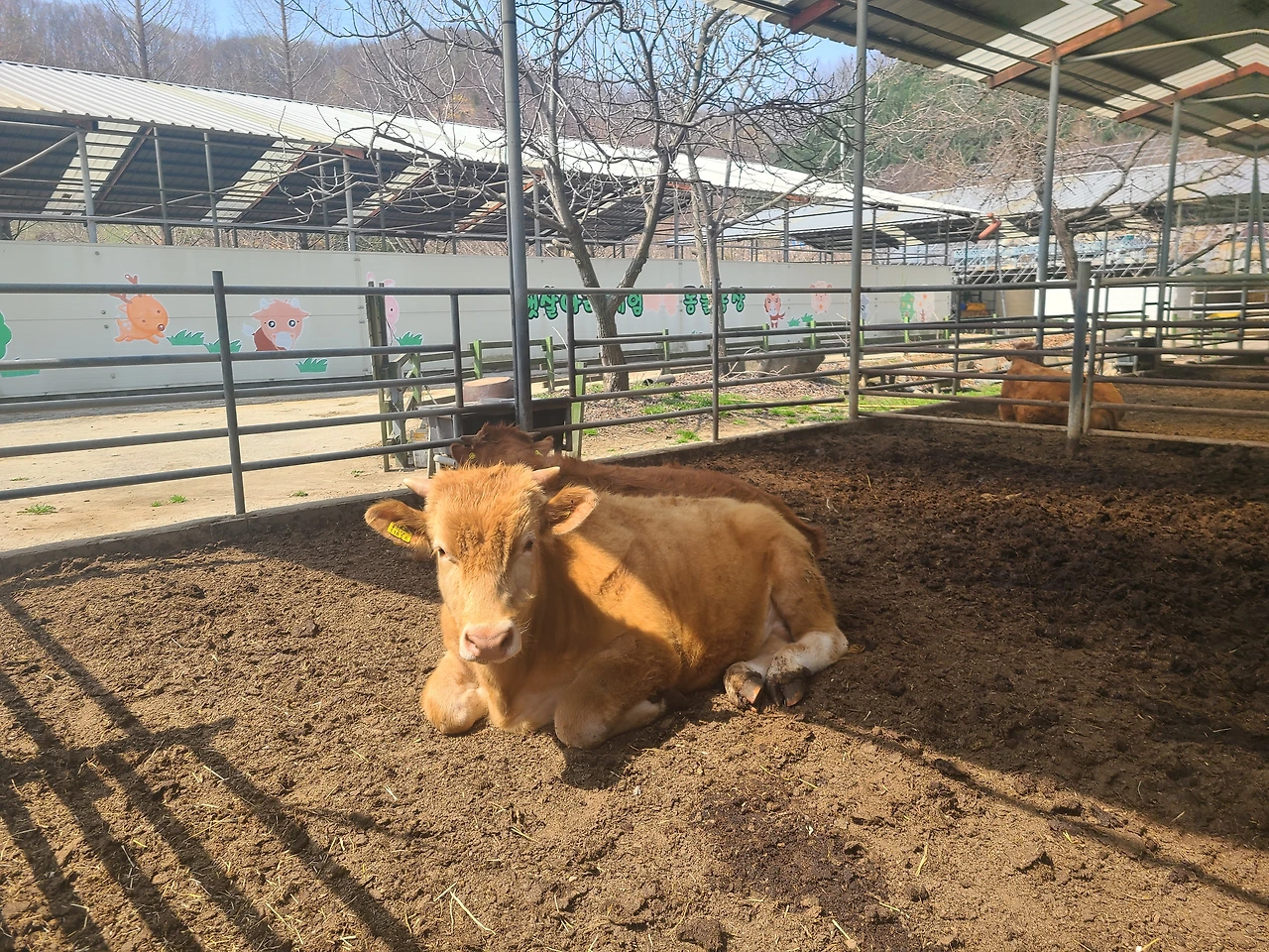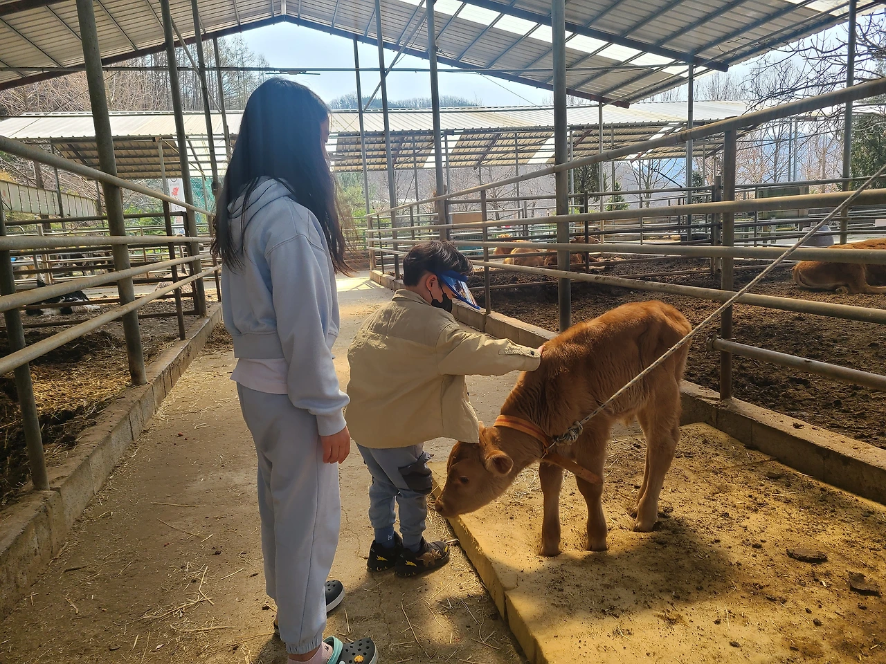 울타리 밖에 나와 있는 순하디 순한 아기 송아지를 아이들은 쓰다듬어 보며 신기해했다.