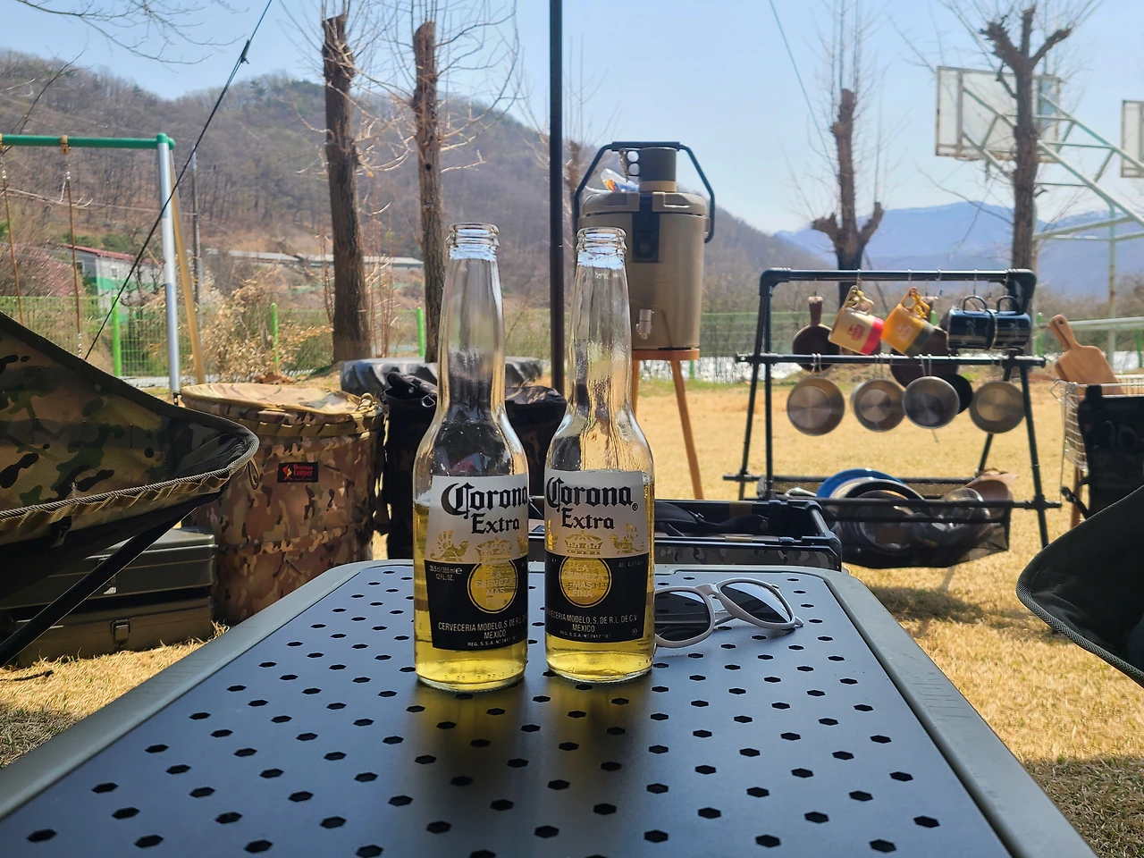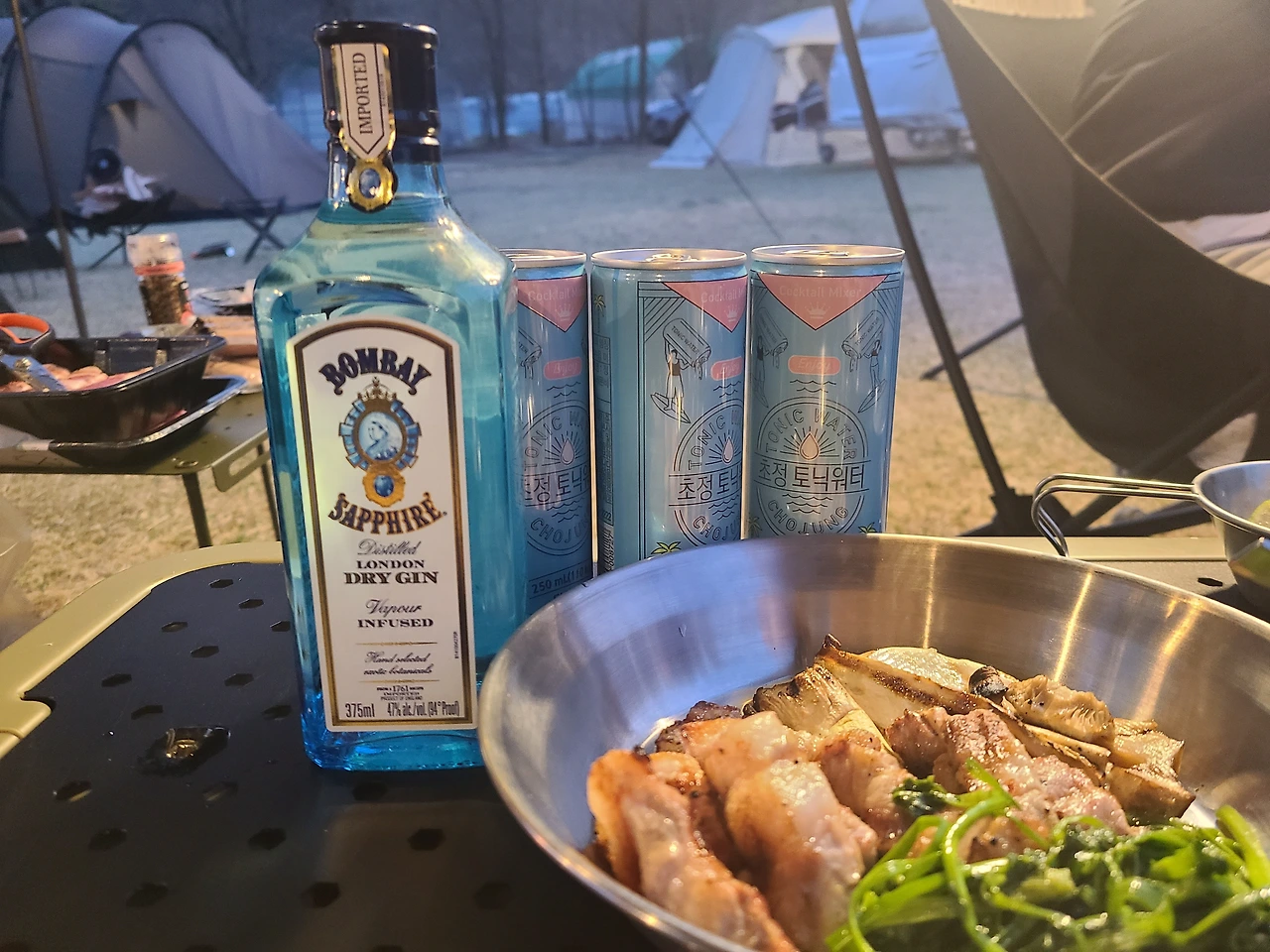 농장이 바로 앞에 있어 다행이라며 우리는 시원한 맥주를 마시면서 봄을 느끼며 캠핑을 즐겼다.