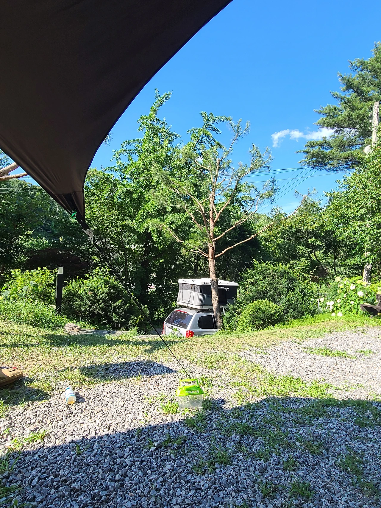 우리가 예약한 두 가족 사이트는 블랙 타프가 아무 소용없는 직사광선이 사방으로 내리꽂는 그런 사이트였다.