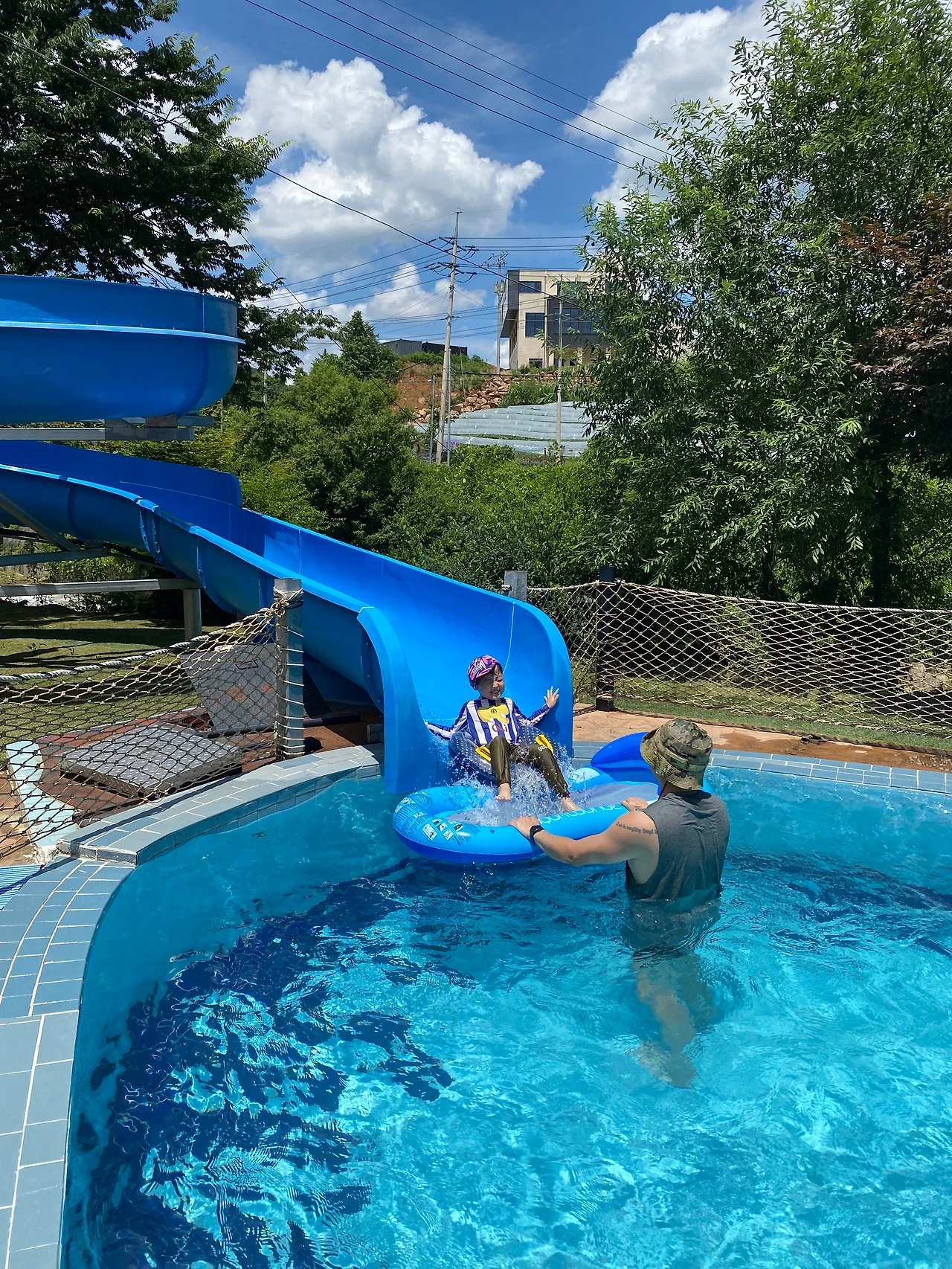 수영장에 있는 워터슬라이드는 보기와 다르게 너무 재밌었다.