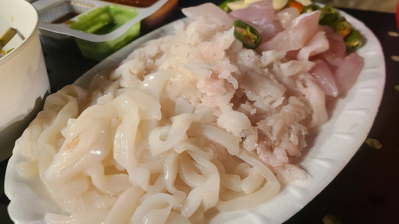 마지막으로 은하수를 보면서 먹을 안주로 회 한 접시도 포장했다.