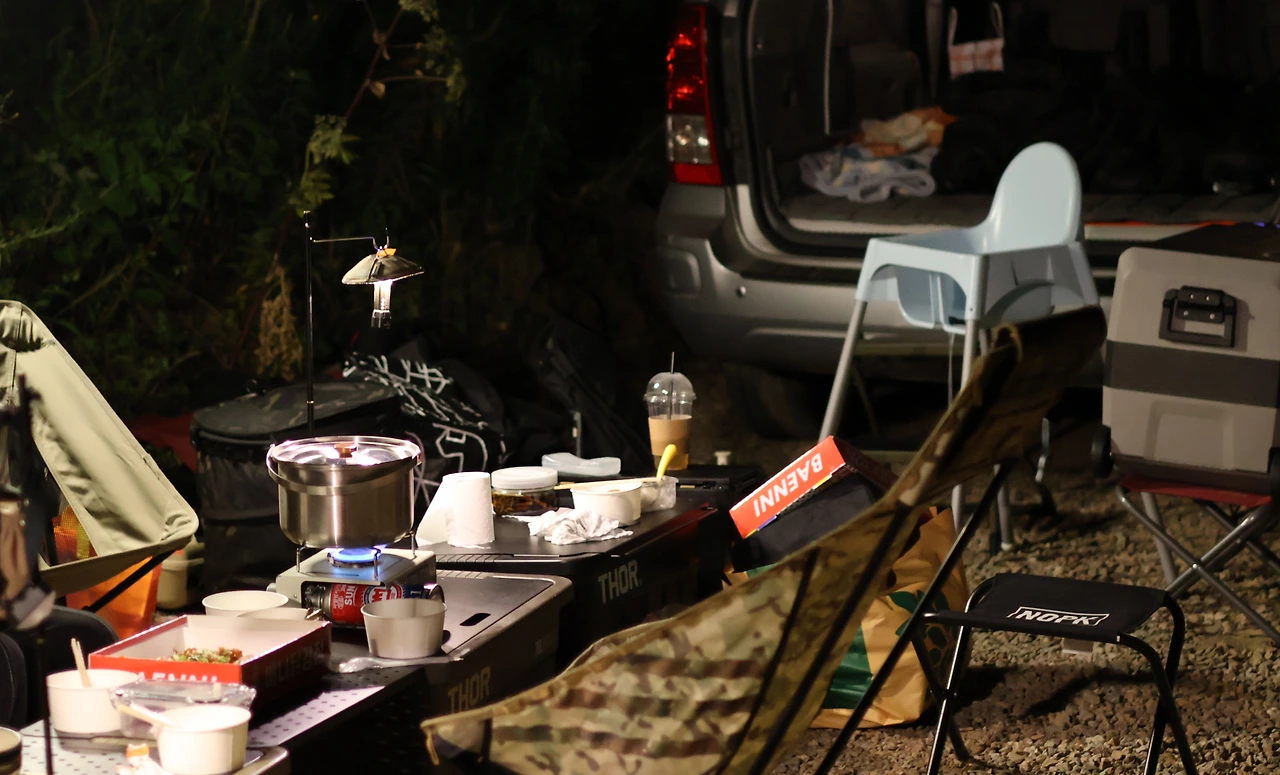 차박이니 피칭할 것도 없고 테이블만 두면 되니 세상 편했다. 이래서 차박을 하나 보다 싶었다.