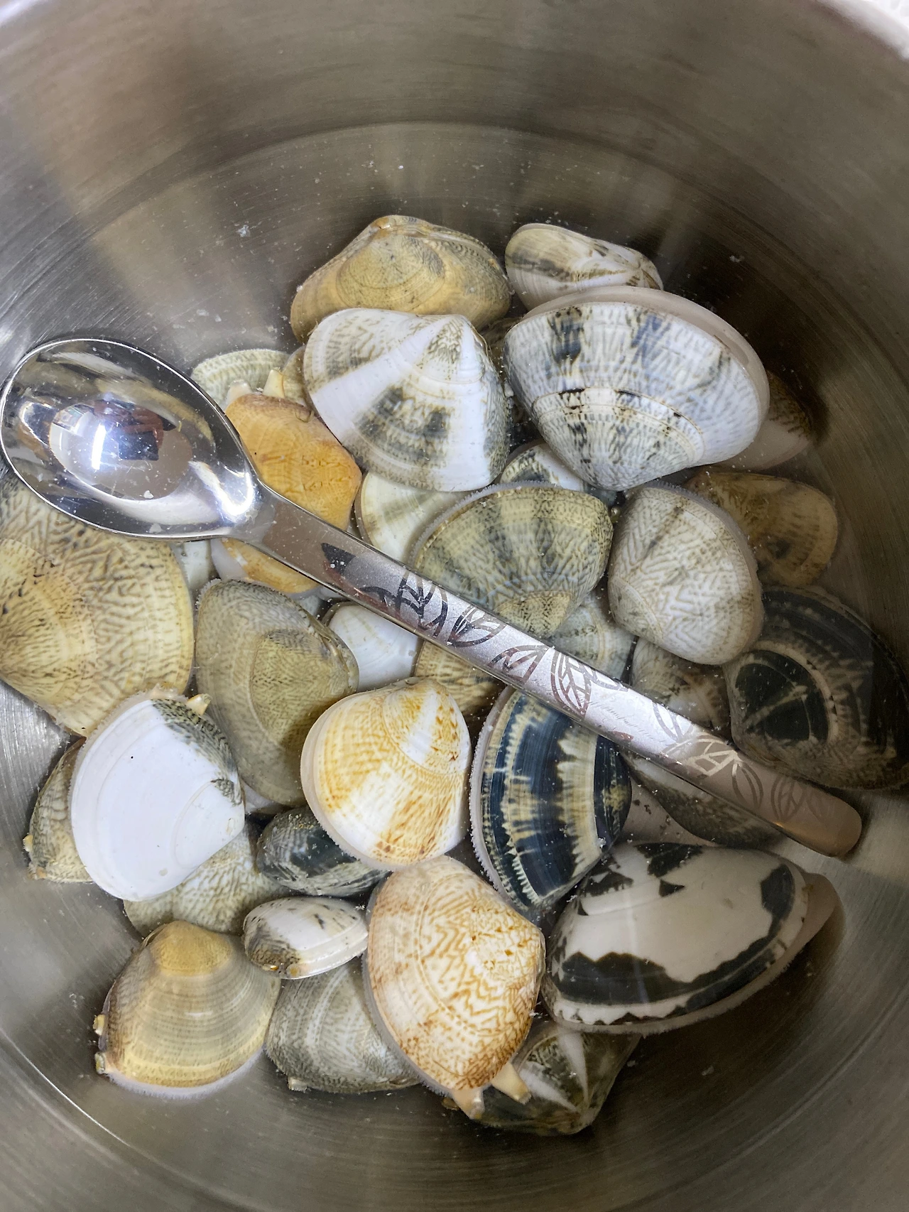 내 발아래를 보니 조개가 한가득 보였다. 휘몰아치는 파도 덕분에 조개 떼가 밀려온 것일까.