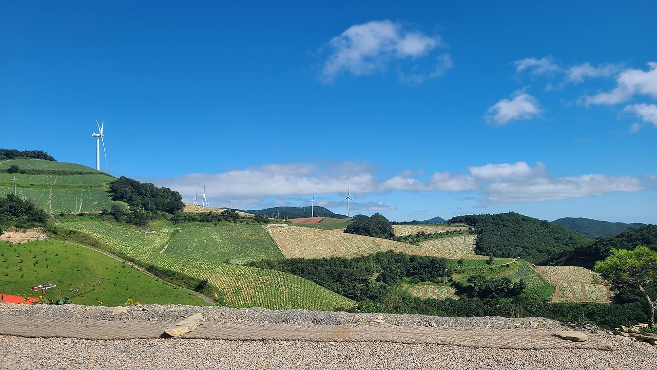 보이는 곳마다 절경이었고 영화 속 한 장면이었다. 말도 안 되는 풍경에 취해 시원한 공기를 맡고 싶어 창문을 내렸더니 배추 냄새가 현실임을 느끼게 해 주었다.