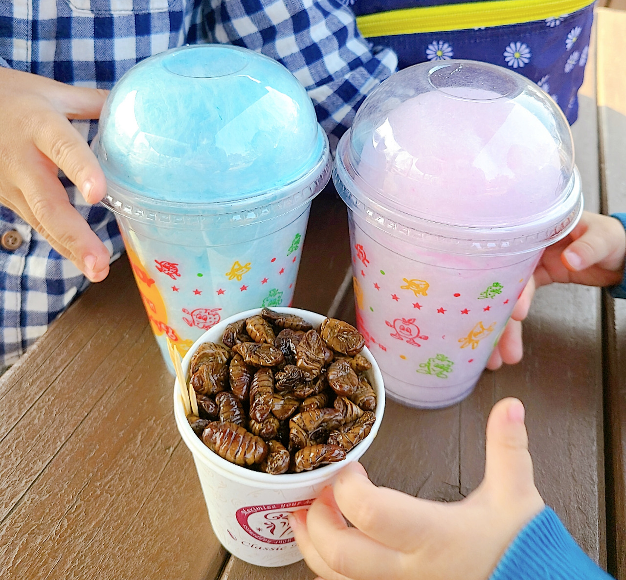 컵에 담긴 솜사탕을 고른다. 오빠가 고른 게 뭔지도 모르면서 둘째는 오빠가 고른 걸 먹겠다며 연신 고개를 끄덕인다. 솜사탕 두 개를 사서 가려는데 트럭 안에 번데기가 보인다. 오랜만에 보는 번데기에 선뜻 지갑이 열렸다.