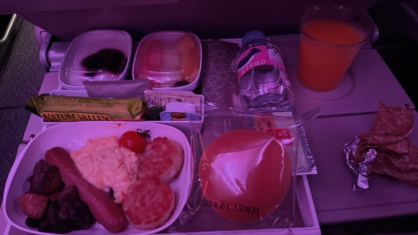 비행기를 타고 한국 땅을 떠나자마자 한 시간 정도 지났을까. 기내식이 제공되었다. 이미 공항에서 저녁을 먹었기에 배는 전혀 고프지 않았지만 이상하게도 비행기만 타면 기내식을 다 챙겨 먹게 된다. 어떤 음식이 나올지, 어떤 맛일지 궁금해서 놓칠 수가 없다.