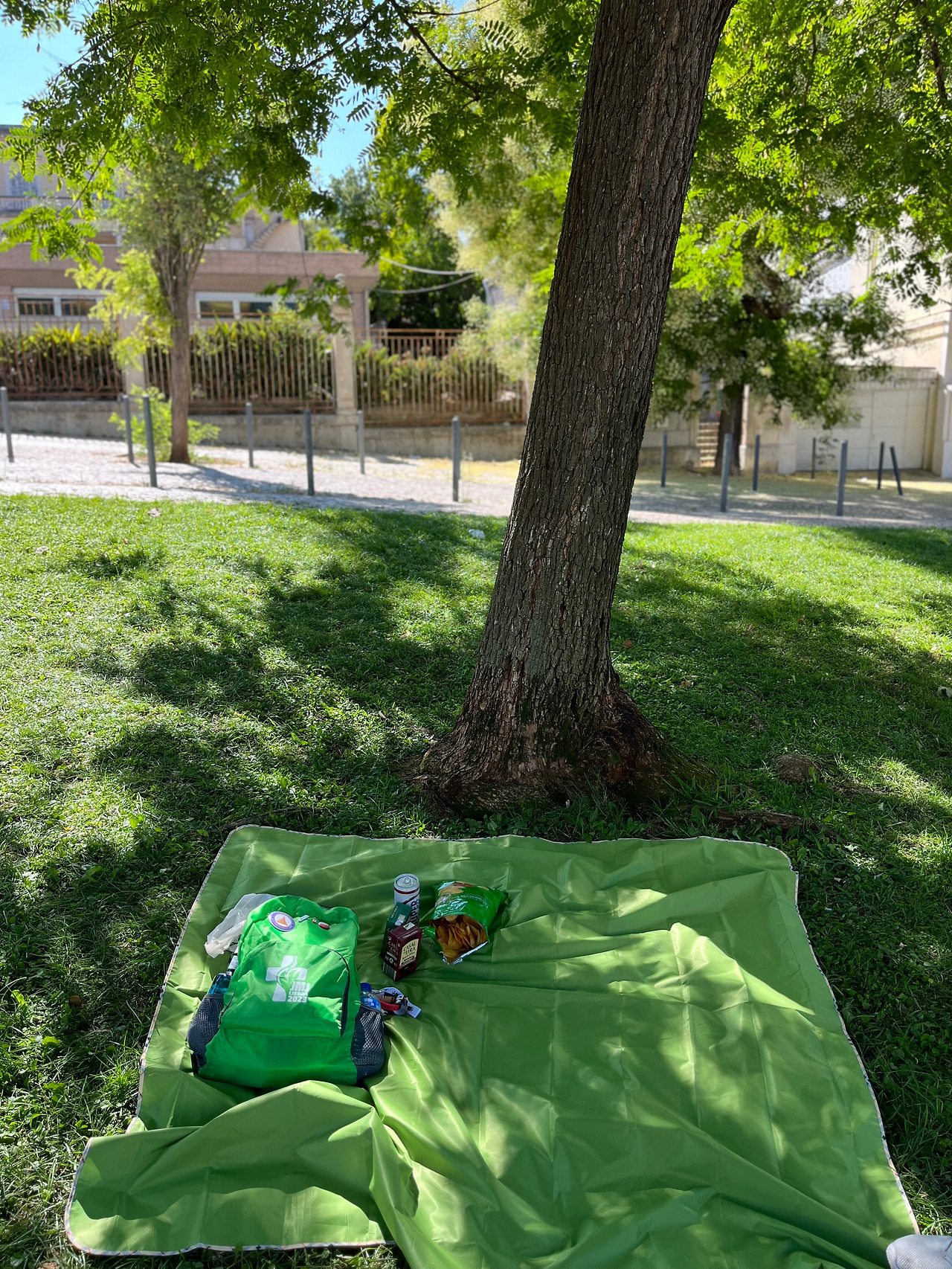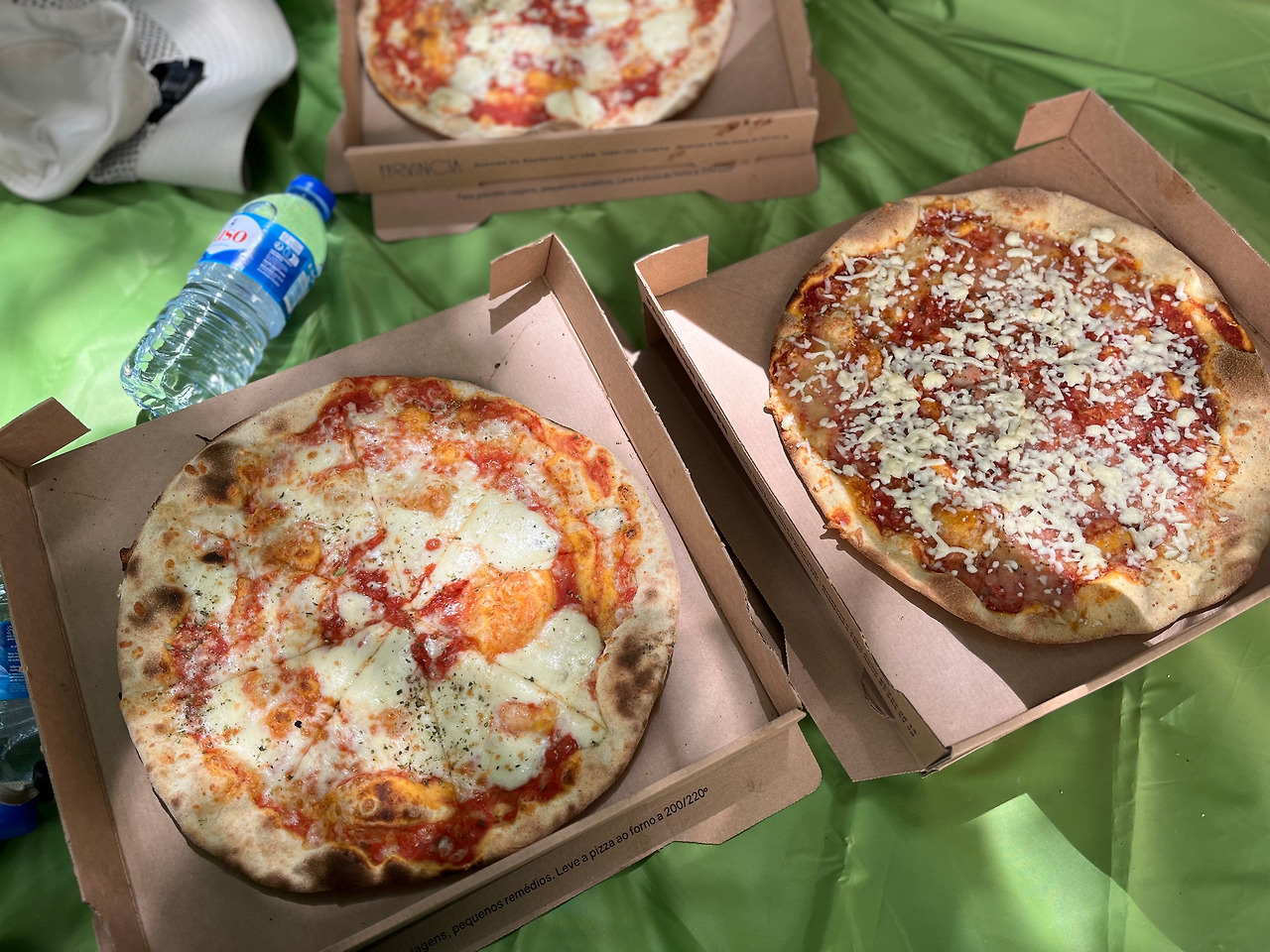 오늘 점심은 조별로 식사했는데 어제부터 줄이 엄청 길었던 피자 집을 가보기로 했다. 1인당 피자 한 판을 주는 Pasta Non Basta Avenidas Novas라는 이름의 피자집인데 주문받으면 바로 화덕에 구워서 나온다고 한다. 조원 몇 명만 줄을 서서 피자를 챙겨 오기로 했고 나머지는 돗자리에 앉아서 기다렸다. 혹시나 해서 챙겨 온 방수 경량 돗자리가 이렇게 유용할 줄이야.