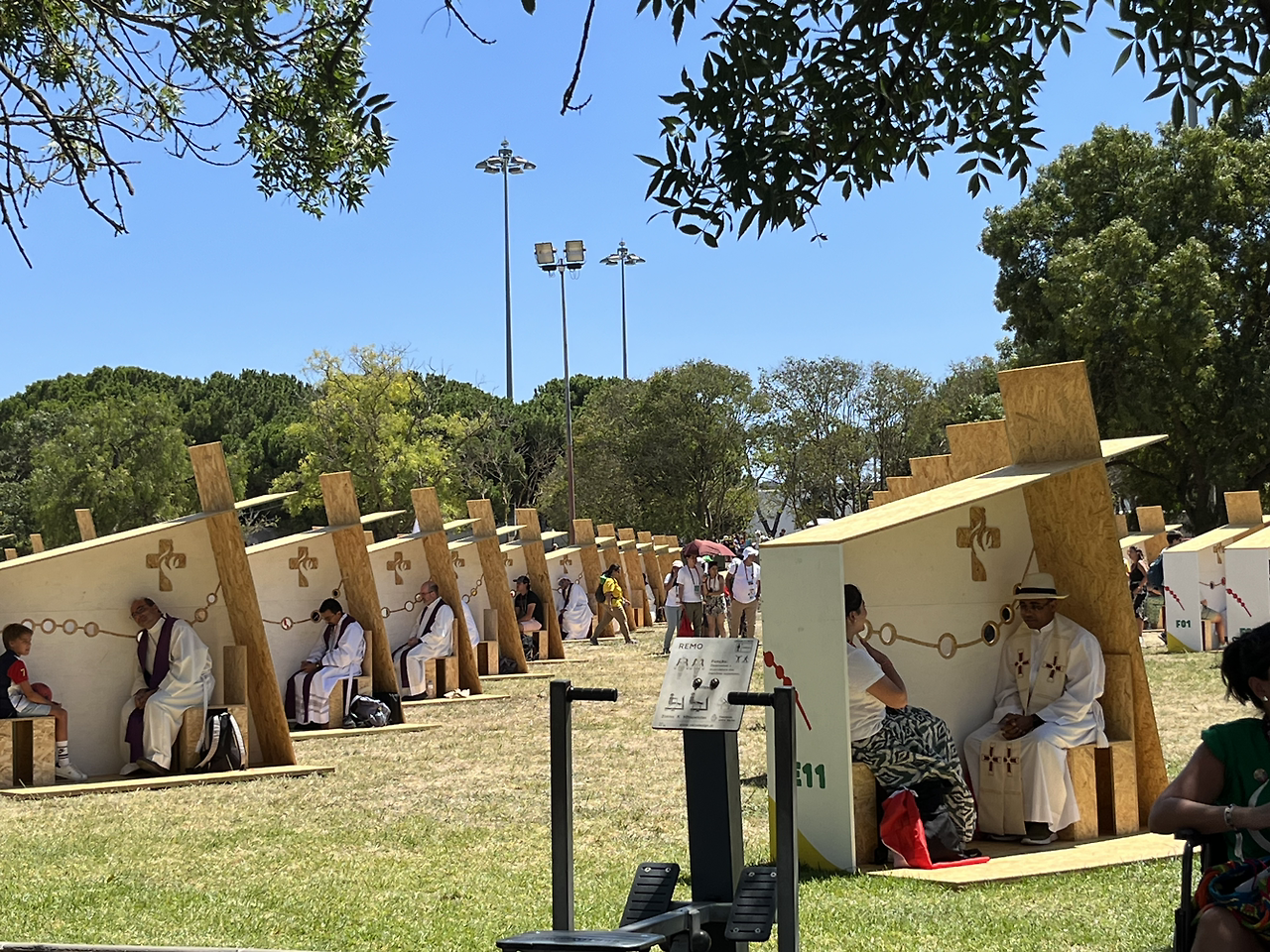 공식 행사 전에 고해성사를 하러 가기로 했다. Garden Vasco da Gama에서 진행돼서 구도심 벨렘 지구 쪽으로 다시 내려가야 한다. 다양한 언어로 순례자들이 고해할 수 있도록 본 대회 기간동안 각 국의 신부님들께서 각 언어에 맞는 부스에 대기하고 계신다.