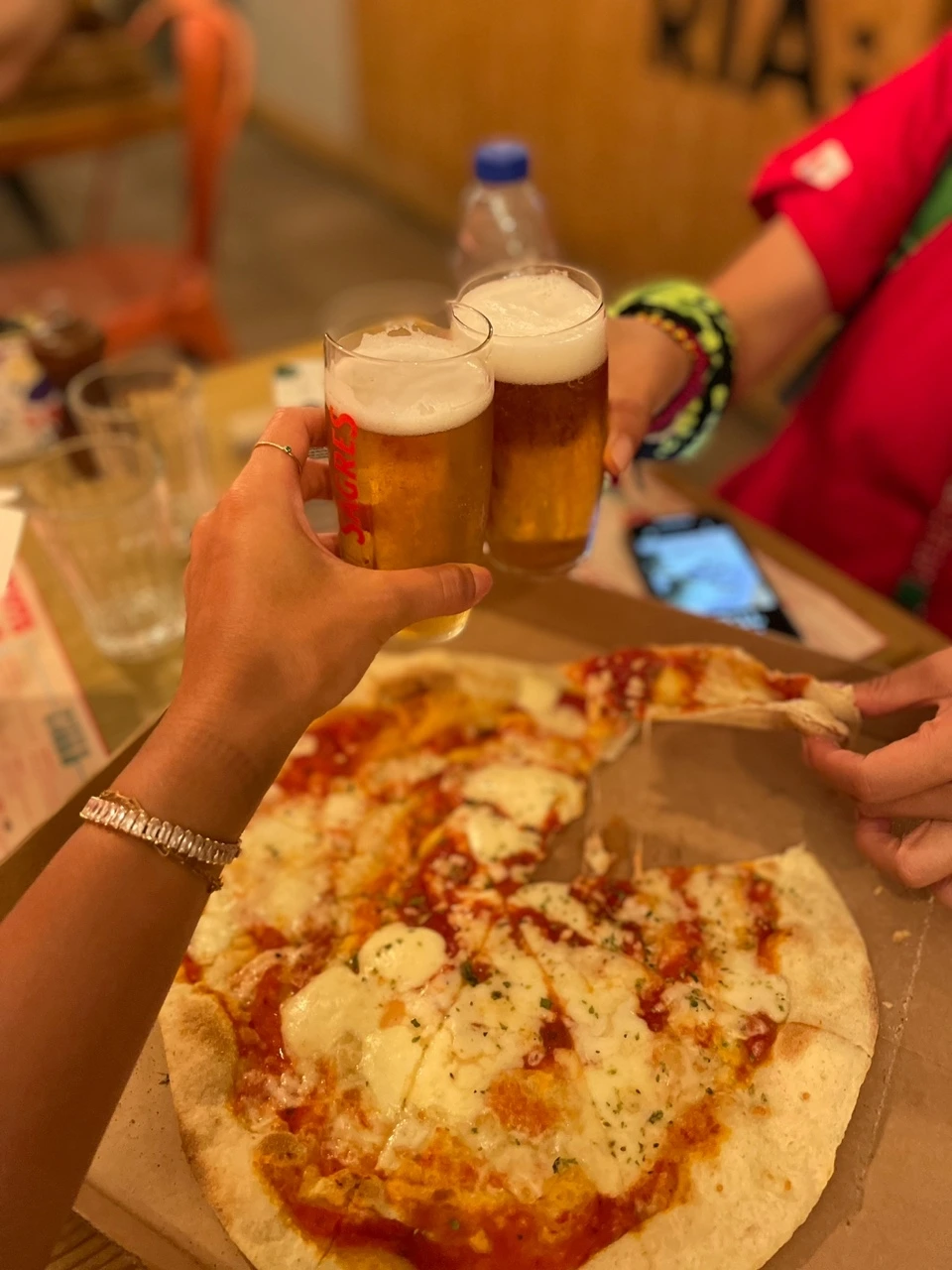 저녁 식사는 줄 서서 먹는 피자집을 아직 안가본 단짝을 위해 Pasta Non Basta Avenidas Novas로 결정! 늦은 저녁에도 여전히 순례자들이 많았다. 앉아서 기다리는데 슬슬 피곤이 밀려오고 있었다. 우선 입가심으로 맥주 두 잔을 주문했고 한참 수다를 떨고 난 뒤에 피자가 나왔다. 사장님이 오래 기다리게 해서 미안하다며 맥주는 서비스로 주겠다고 하셨다. 이렇게 감사한 일이... 오래 기다릴 거 알고 왔다고 계산하겠다고 했는데도 그냥 가라는 사장님. 오히려 친절한 고객을 만나서 본인도 감사하다고 말씀해 주셨다. 참 좋은 분이시다. 사장님과 직원들하고 화기애애하게 이야기 나누고 기념사진도 찍고 나서 기분 좋게 식당을 나섰다. 단짝과 나는 참 운이 좋다. 가는 곳마다 사람들도 친절하고 음식도 맛있다. 참 감사한 일이다. 다음에 리스본에 오면 이 피자집은 꼭 다시 와야지.