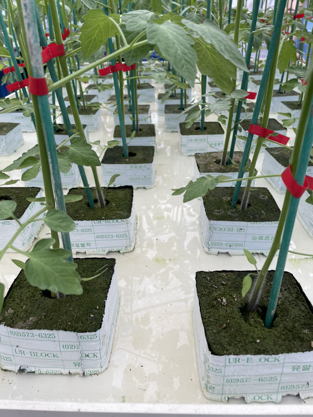 오늘은 대추 방울토마토를 수경 재배하는 기초를 배웠다. 실내 강의실에서 간략한 설명을 듣고 모종을 키우는 비닐하우스 실습장에 가서 모종을 10개씩 받았다. 먼저 모종을 관찰해서 키와 잎 수 등을 기록했다. 그리고 물에 비료를 타서 주었다. 물을 위에서 들이붓는 게 아니라 모종의 아래쪽에서 흡수시키게 물에다가 모종을 담그는 형태였다. 이걸 저면관수라고 부른다고 한다. 1시간 정도 흡수시킨 후 물을 배수해야 했다. 매일 이걸 해줘야 한다. 뿌리가 물에 강하면 물에 넣고도 키우는데 얘는 아니라고 한다.