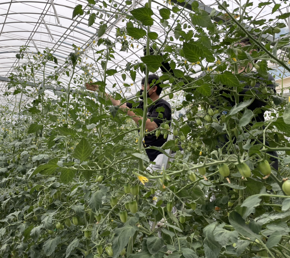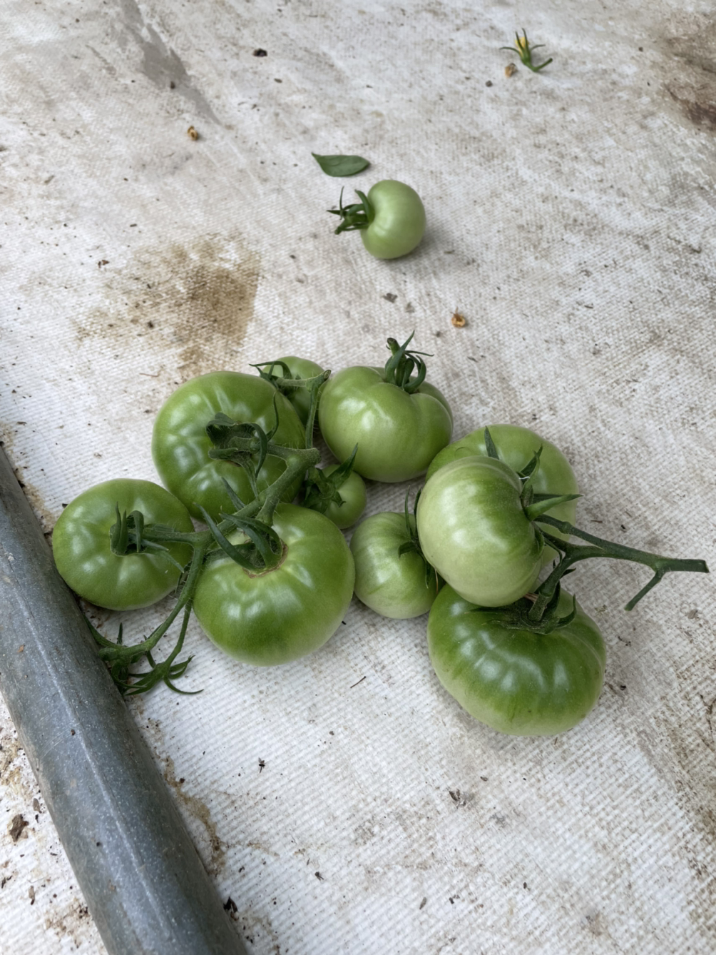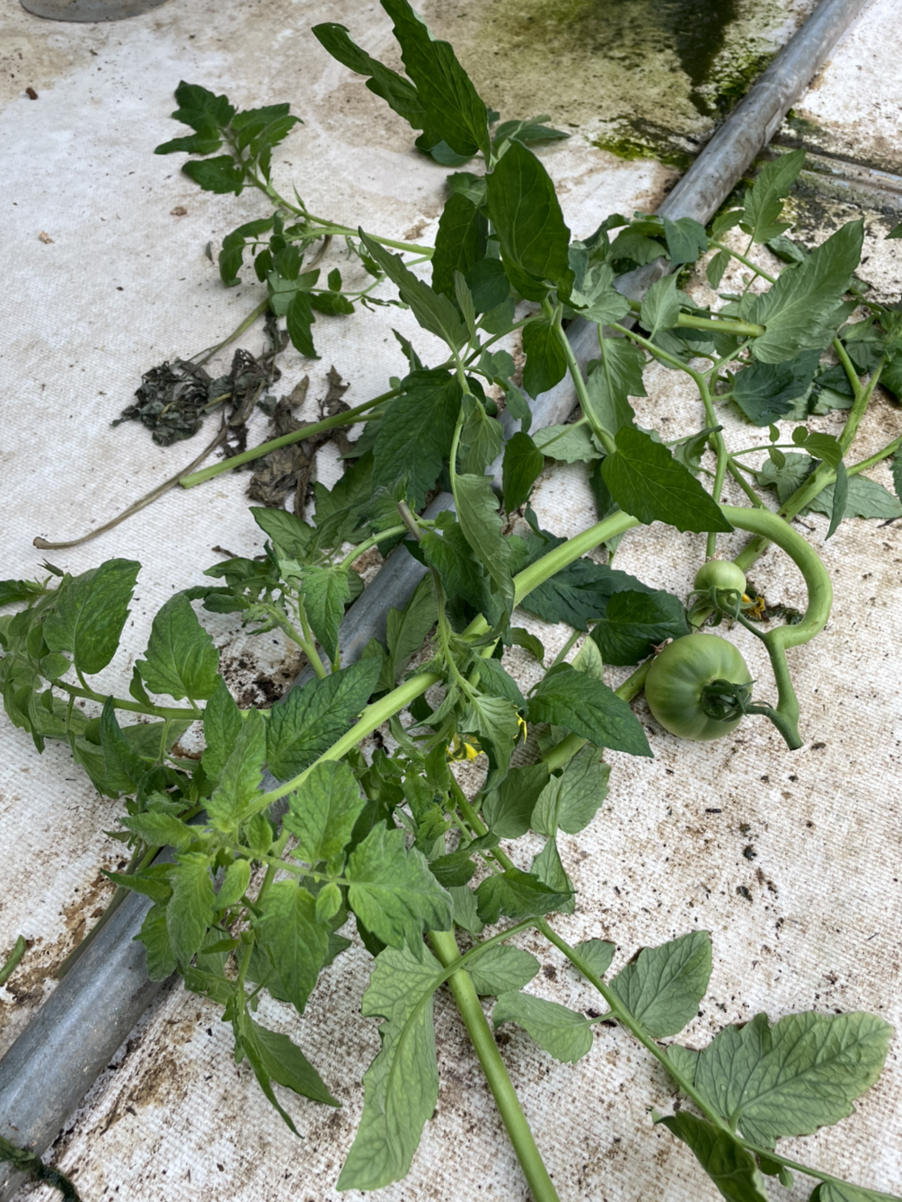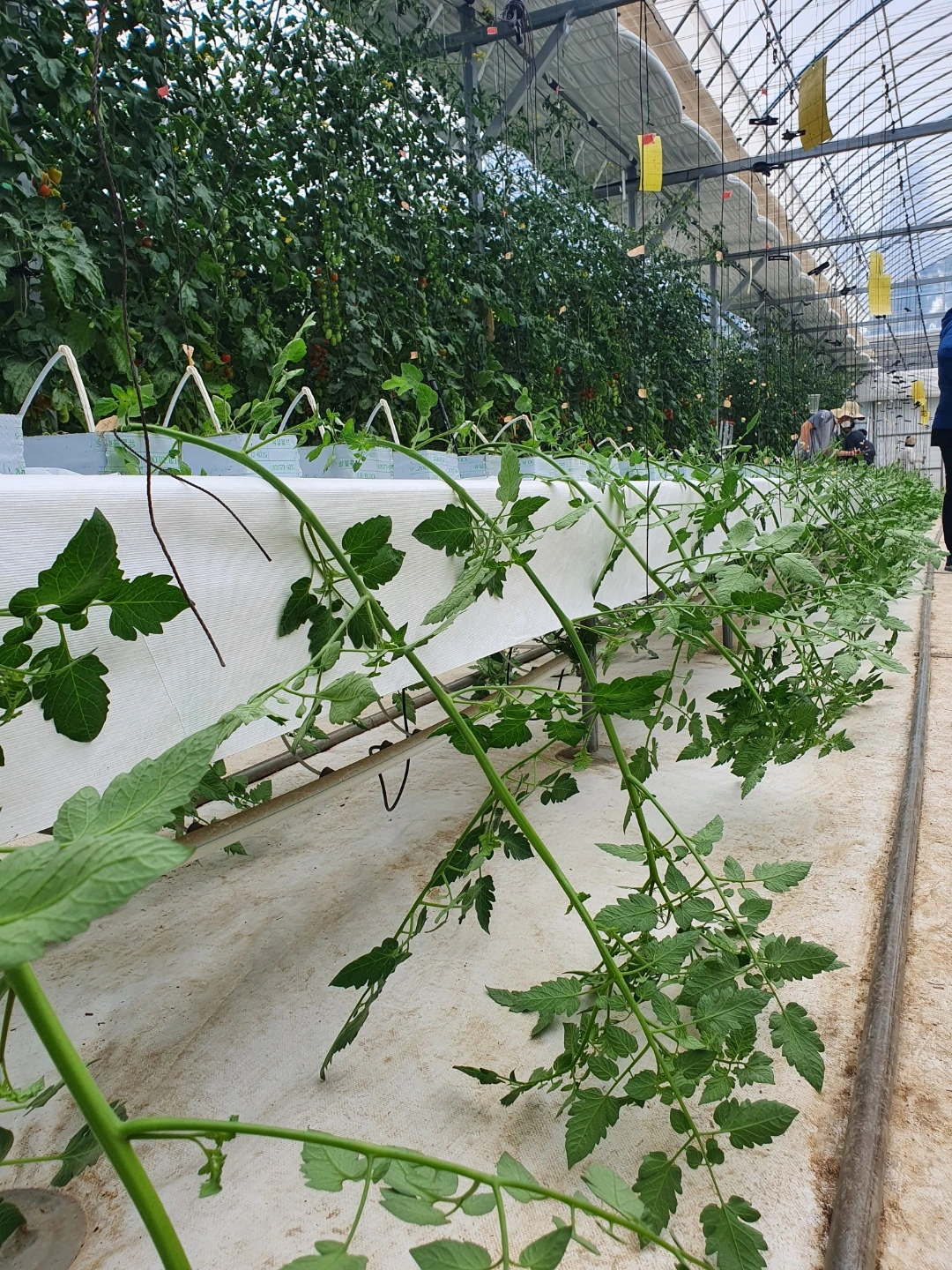 토마토는 정말 빠르게 자란다. 그래서 계속 자라고 있는 토마토 줄기들을 정리해 주었다. 오늘은 완숙 토마토, 대추 방울 토마토 줄기들의 측지를 제거해 주었다. 그리고 줄기가 자라난 만큼 위인 줄을 조금 더 풀어서 원줄기에 감아서 똑바로 자라도록 해주었다. 대추 방울 토마토는 키가 무척 커서 사다리에 올라가서 작업을 해줘야 했다. 몇 명은 계속 사다리를 올라 다니고 나머지는 밑에 쪽 가지를 정리해 주면서 불필요하게 양분을 가져가는 꽃과 과일들을 제거해 주었다. 꽃 개수가 너무 많은 경우 끝 쪽의 꽃을, 수분이 안된 꽃들을 잘라주었다. 벌레를 먹거나 흉터가 난 과일, 너무 과일이 많이 달려서 양분을 뺏어가기만 하고 상품성은 없는 과일들은 잘라주었다.
