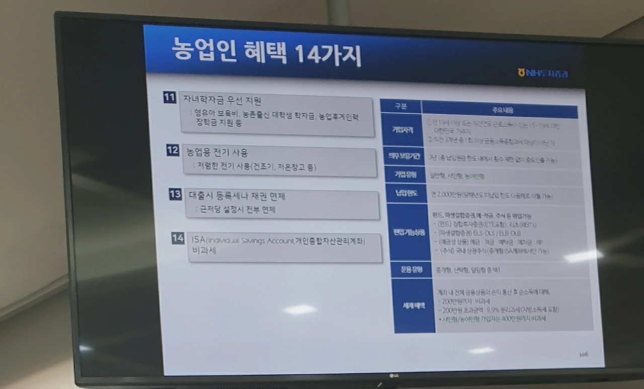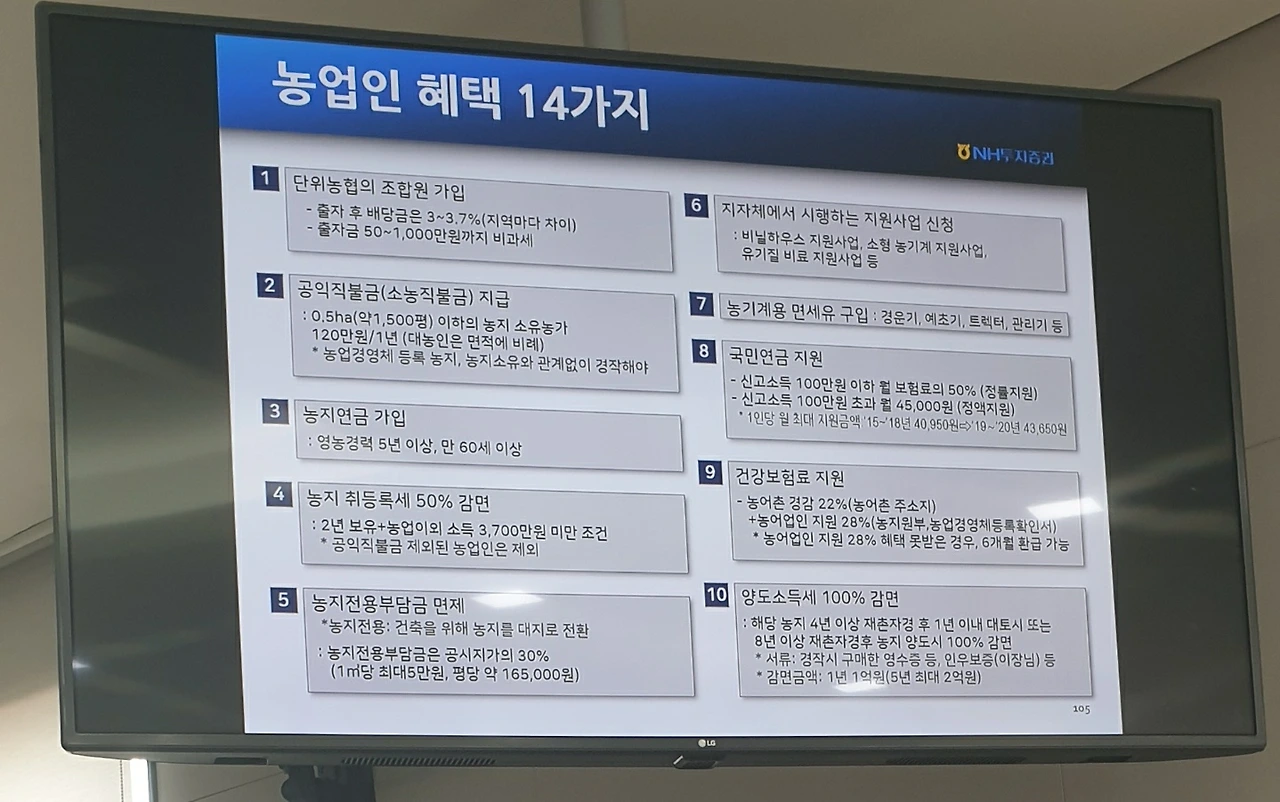 오늘의 이론은 특강이었는데 주제가 자산관리였다. 강사는 농협에서 나온 분이었다. 주제를 듣고는 필요하기는 한데 과연 어떤 이야기를 하실는지 감이 오지 않았다. 들어보니 현재 안 좋은 경제 상황, 노인인구 증가 현황, 연금이나 주식시장 불안 등 미래가 불투명하므로 자산관리를 해야 한다는 것이 요지였다. 이미 다 알고 있는 내용이었고 뾰족한 해결책이 없는 내용이어서 흥미가 떨어졌다. 차라리 흥청망청 병 막는 가계부 쓰는 법 같은 것을 했다면 어땠을까 싶다. 우리 중에 분명히 저축 안 하고 물 쓰듯 돈 쓰고 관리 못하는 사람들도 있을 텐데 이러한 실사례들을 토대로 우리에게 좀 더 와닿는 내용으로 강의를 했다면 어땠을까라는 생각이 들었다. 농사를 짓기 시작하면 사실상 개인 창업을 하는 것과 다름없을 텐데 기본적인 돈 관리 방법부터 알려주는 게 나을 것 같다.