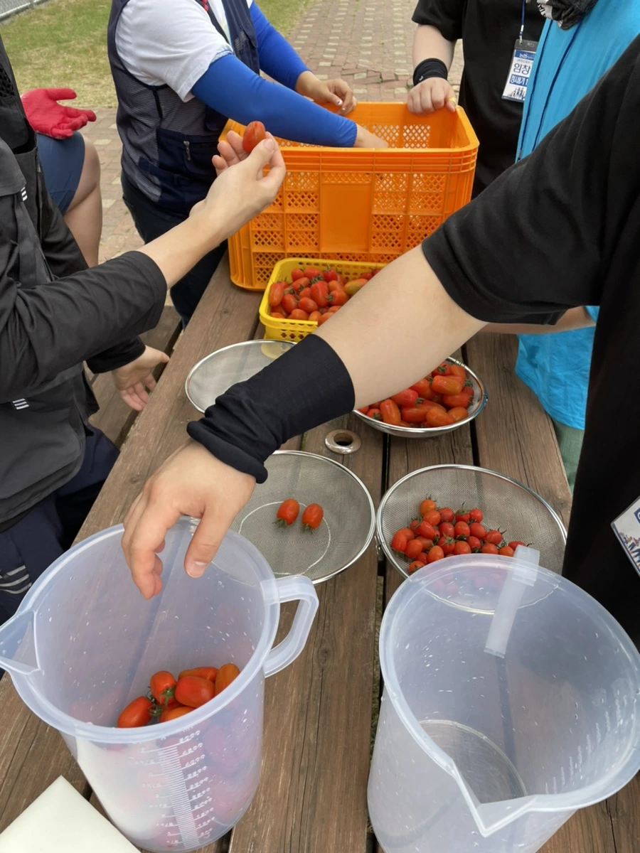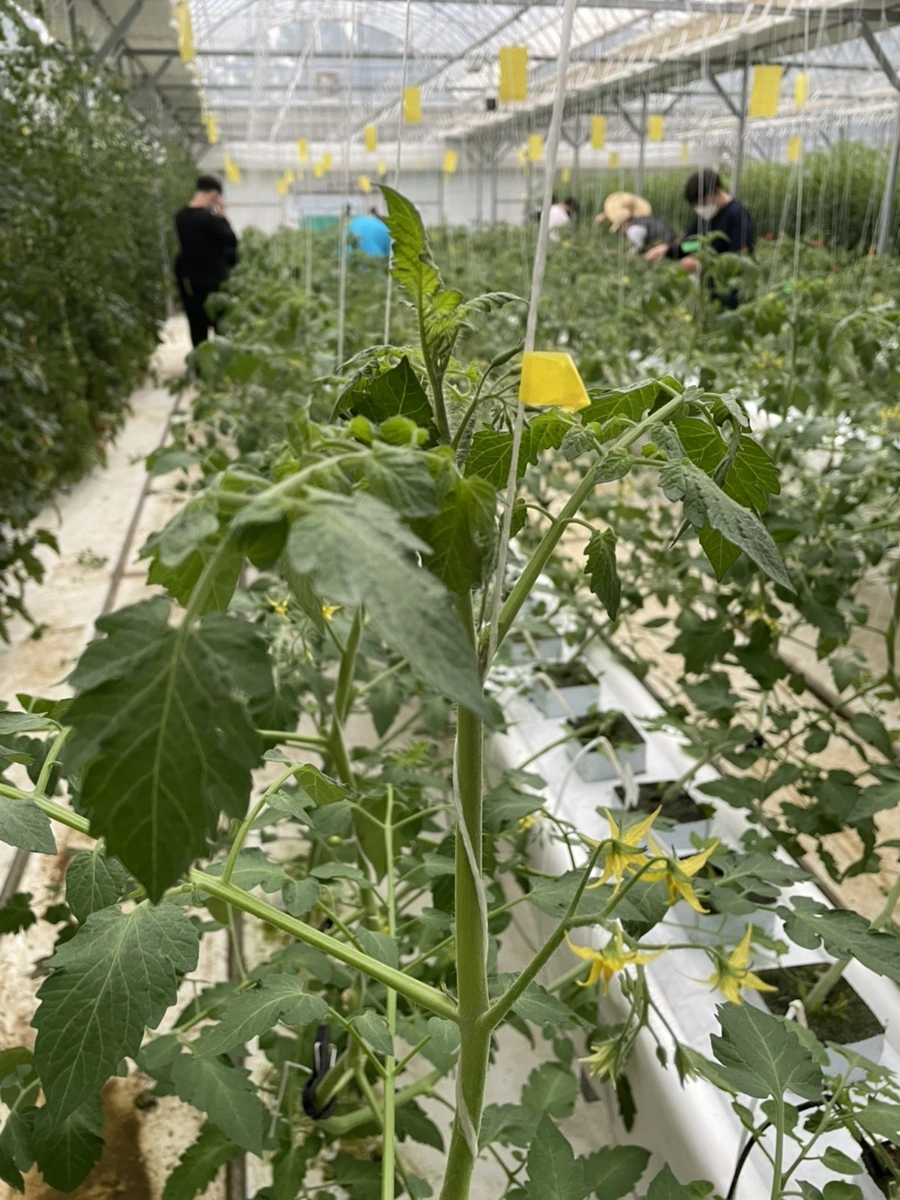 오후에는 수확해서 저온 창고에 보관해 놓았던 토마토를 선별했다. 그리고 토마토 줄기들을 관리해 주었다. 불필요한 잎은 제거해 주고 이리저리 아무렇게나 자라고 있는 줄기들에 유인줄을 감아서 똑바르게 세워주었다. 그리고 생장점이 있는 자리에 테이프를 감아서 얼마나 빠르게 자라나는지 체크해 보기로 했다. 예전에 우리가 모종을 심었던 어린 토마토 모종들도 관리해 주었다. 얼마나 키가 컸는지 잎은 얼마나 되는지 등 생육조사를 해주었다. 이렇게 데이터를 쌓아 놓으면 다음에 조사할 때에 얼마나 자랐는지 무슨 문제가 있는지 파악할 수 있다.