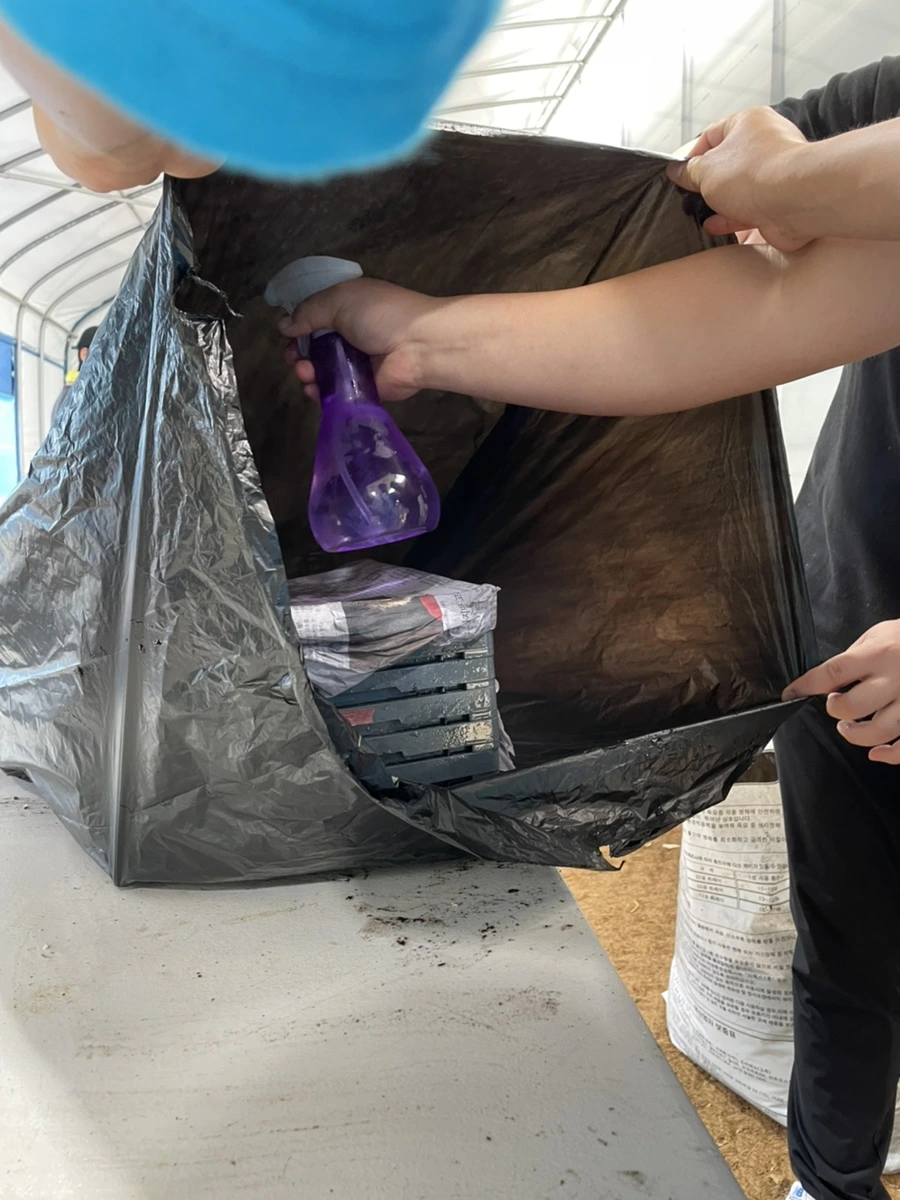 그리고 계획대로 어제 불려놓은 적무 씨앗을 파종해 주었다. 소독한 모판에 종이를 깔고 상토를 얇게 펴준 후 씨앗을 골고루 뿌려주었다. 그러고는 가볍게 흙을 덮어주었다.(복토라고 부른다.) 물을 뿌려준 후 신문지로 덮고, 해가 안 들도록 검정 비닐봉지로 밀봉해 주었다. 고온 다습한 환경에서 3-4일 두면 새싹이 올라온다고 한다.