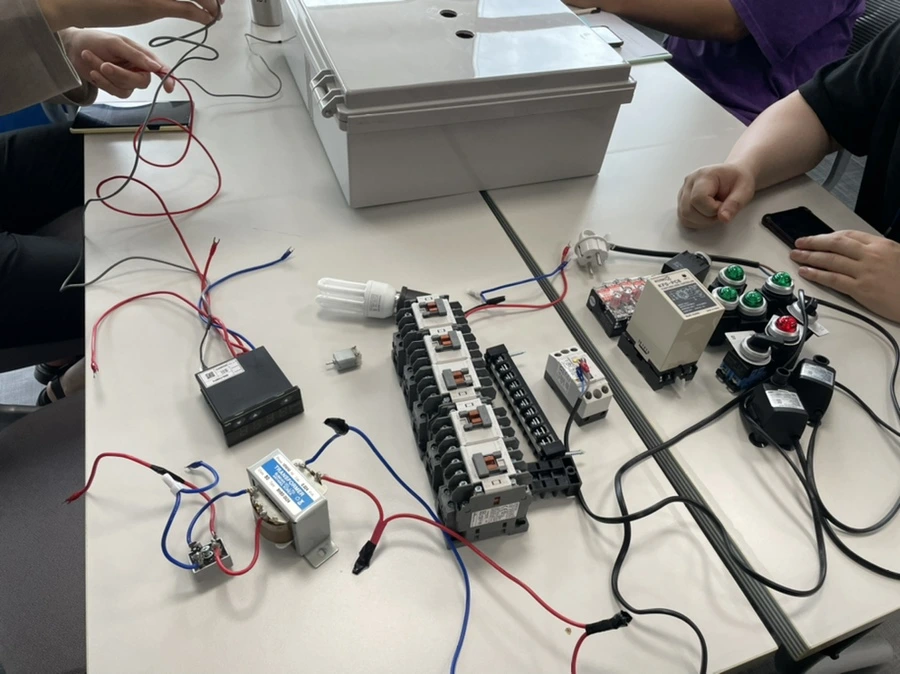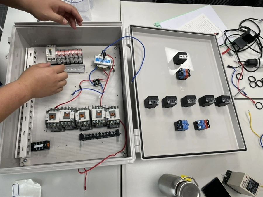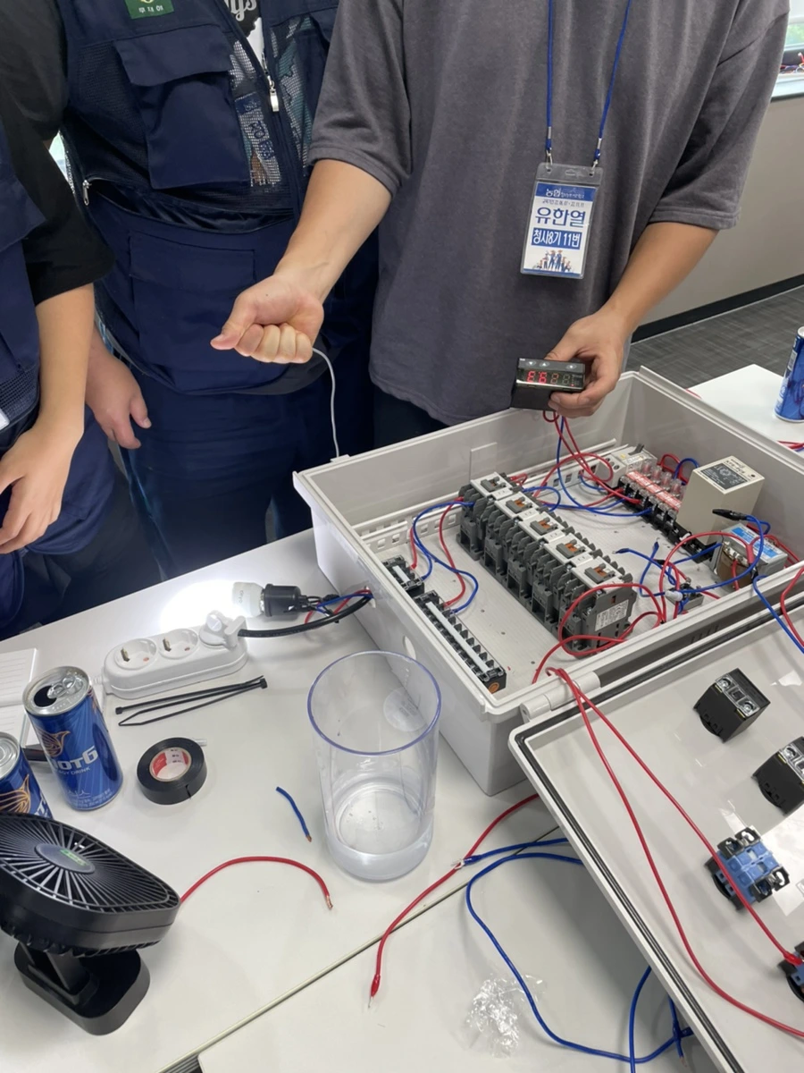 스마트팜도 세대가 나뉘는데 1세대는 원격감시와 원격제어를, 2세대는 센서와 데이터를 통한 자동제어, 3세대는 로봇을 이용하는 것이라고 한다. 우리는 세대 구분을 나누기 이전에 가장 기본이 되는 계전함을 만들어보는 실습을 진행했다. 여러 부품들을 받았다. 누전 스위치, 레버, 모터, 전선, 변압기 등 두꺼비집에서 보던 제품들을 많이 볼 수 있었다.