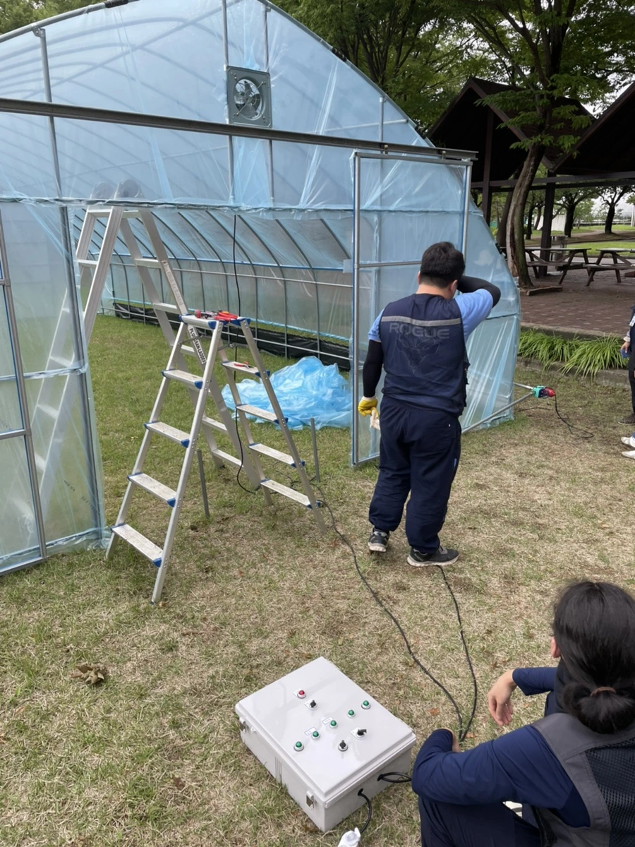 3일에 걸쳐서 조금씩 진행했던 스마트팜 만들기, 계전함 만들기 실습을 안전하게 마무리하고 실제로 비닐하우스에 연결해서 잘 되는지 안되는지 확인을 하러 나갔다. 비닐하우스의 개폐기, 환풍기를 계전함에 연결하고 제어해보았다. 이상 없이 잘 작동되는 것을 확인하니 정말 뿌듯했다. 정말 별거 아닐 수 있지만 전기와 스마트팜에 대한 막연한 두려움을 없앨 수 있었다.