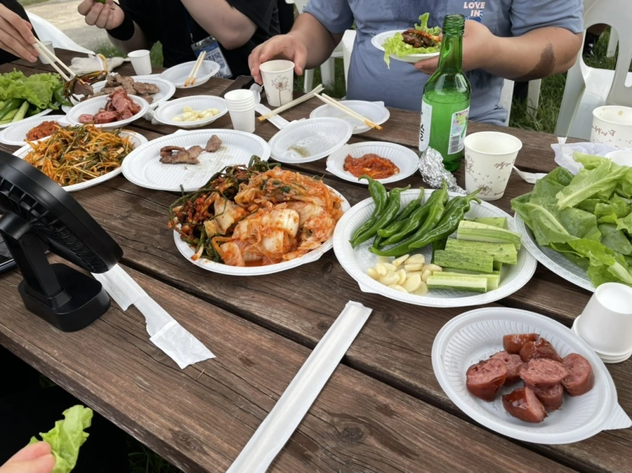 마지막 작업으로 비닐하우스를 철거하고 센터장님과 함께 바비큐 파티를 했다.