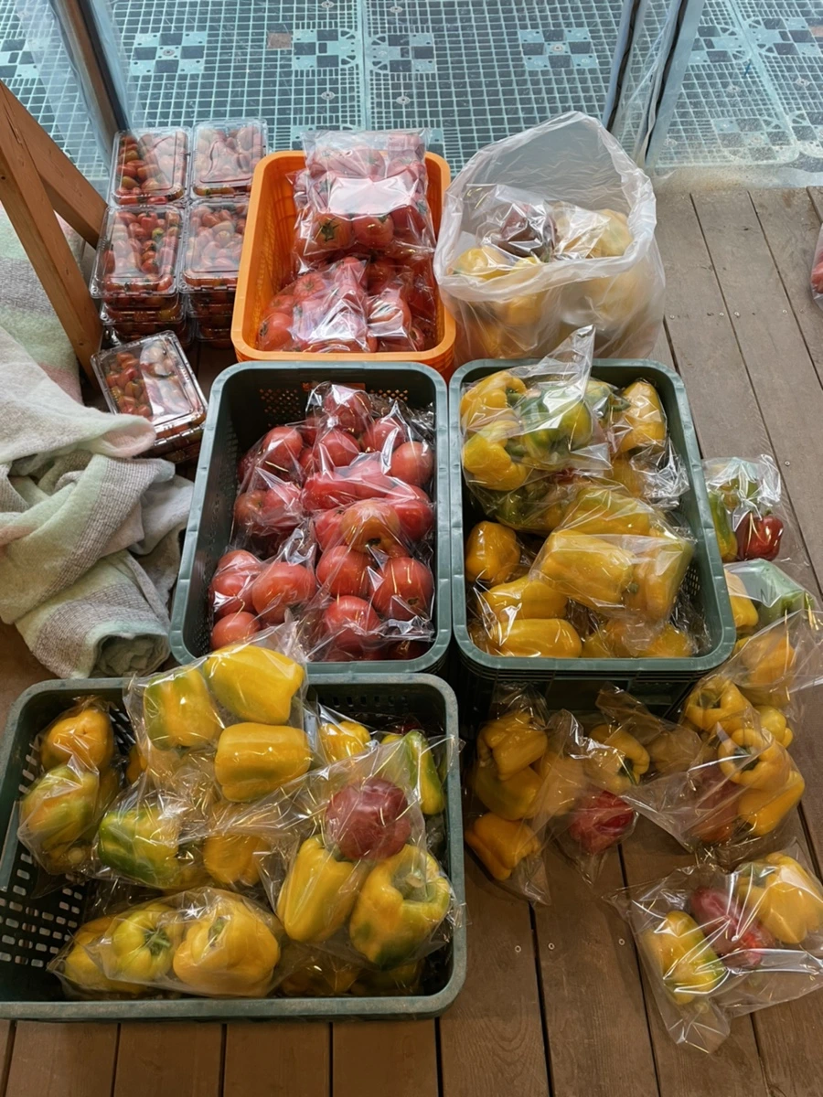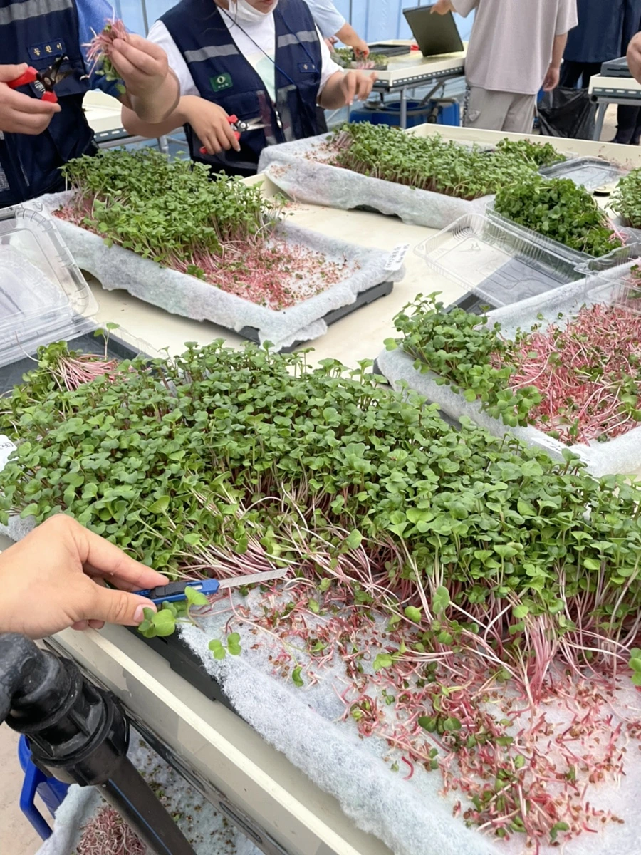 저온 보관소에서 꺼내온 파프리카를 선별/포장하고 적무 새싹을 수확하고 포장했다. 가장 많이 수확한 사람은 상도 받았다.