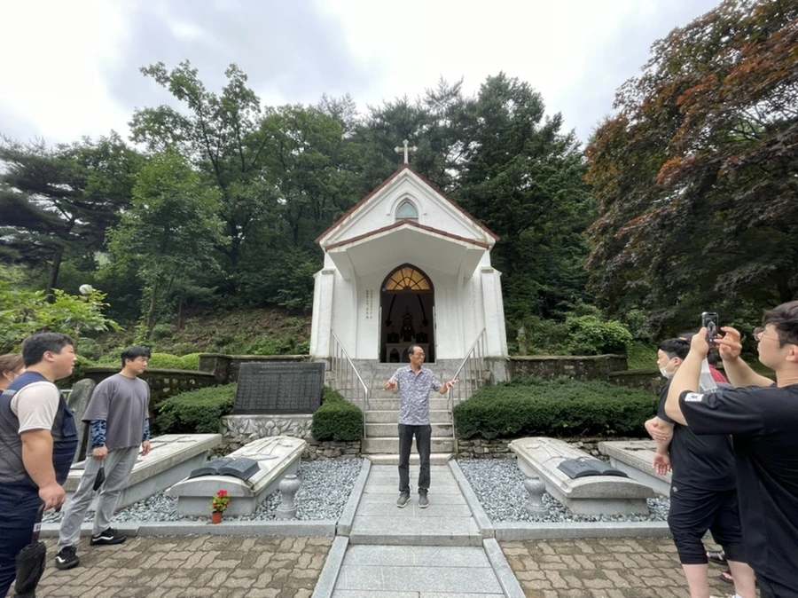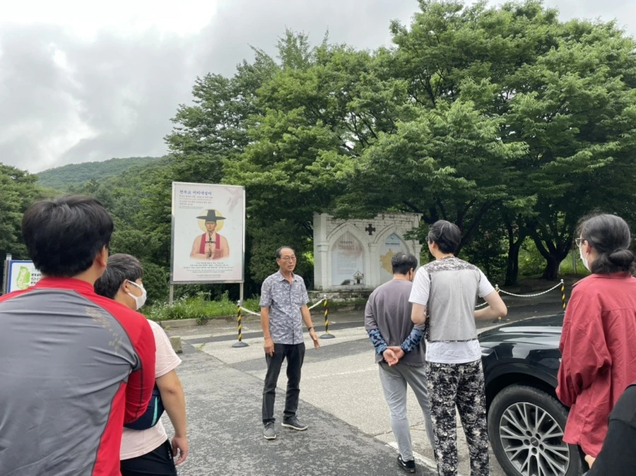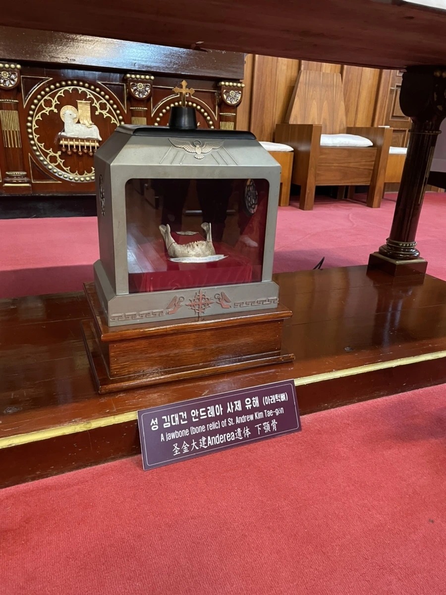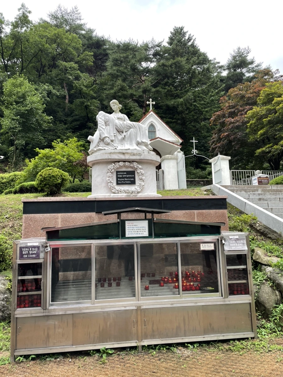 마지막으로 마을의 맨 위쪽에 있는 미리내 성지를 가보았다. 교과서에서 보았던 김대건 신부의 묘가 있는 곳이었다. 아주 오래된 성당 안에는 김대건 신부의 유골 중 일부가 안치되어 있었다. 마치 불교에서 사리를 나눠갖듯 전국의 천주교 성지에 김대건 신부의 유골 조각을 나눠가졌다고 한다.
