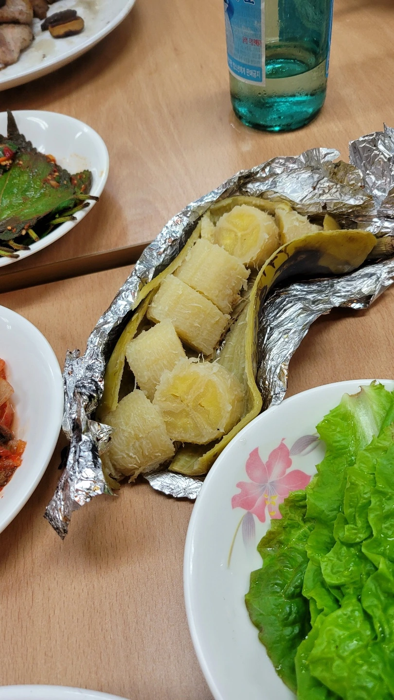 농장에서 받아온 바나나를 구워 먹었는데 덜 익은 바나나라서 고구마/감자 맛이 났다. 안 익어서 그런지 맛이 없었다.