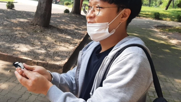 금요일에 수업이 끝나고 견학을 가기 전에 잠시 숙소에 들렀는데 기숙사에 새가 들어왔다는 소식을 들었다. 궁금해서 찾아보니 정말 3층에 새가 길을 잃고 날아다니고 있었다. 한쪽으로 몰아서 창문을 열어보니 방충망이 고정식이라 새가 나갈 구멍이 없었다. 하는 수 없이 잡아서 1층까지 데려와서 내보내기로 했다. 비닐봉지에 몰아넣어서 내보낼까 했는데 계속 실패하는 바람에 새가 막다른 길에 다다랐을 때 손으로 잡기로 했다. 추격전 끝에 다행히 포획에 성공했지만 계단을 내려가는 길에 바깥 풍경을 본 새가 갑자기 손을 뿌리치고 탈출에 성공, 2층에서 다시 추격전을 해서 붙잡았다. 이 과정에서 꼬리 부분의 깃털이 몇 가닥 뽑히긴 했지만 이번에는 잘 잡아서 1층에 놓아주었다.