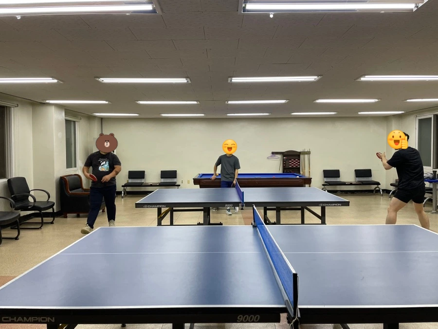 조원들과 재미로 탁구도 쳤다. 오른 어깨는 수술을 했기에 휘두를 수 없어서 이제 왼손으로 탁구채를 쥔다. 하다 보니 조금씩 늘어간다. 역시 사람은 적응의 동물이다. 완전히 새로운데 또 배우고 익혀가는 게 재밌다. 이따금씩 이렇게 쳐야겠다고 생각했다.