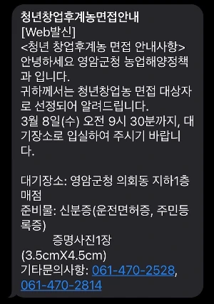 3월 8일에 청년후계농 면접을 보았다. 장소는 영암군청.