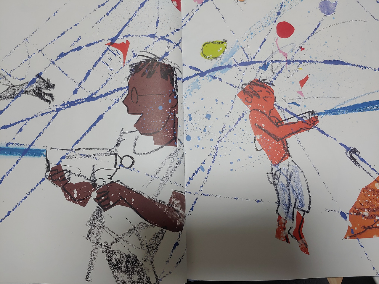 다양한 선이 아이들을 휘감습니다.