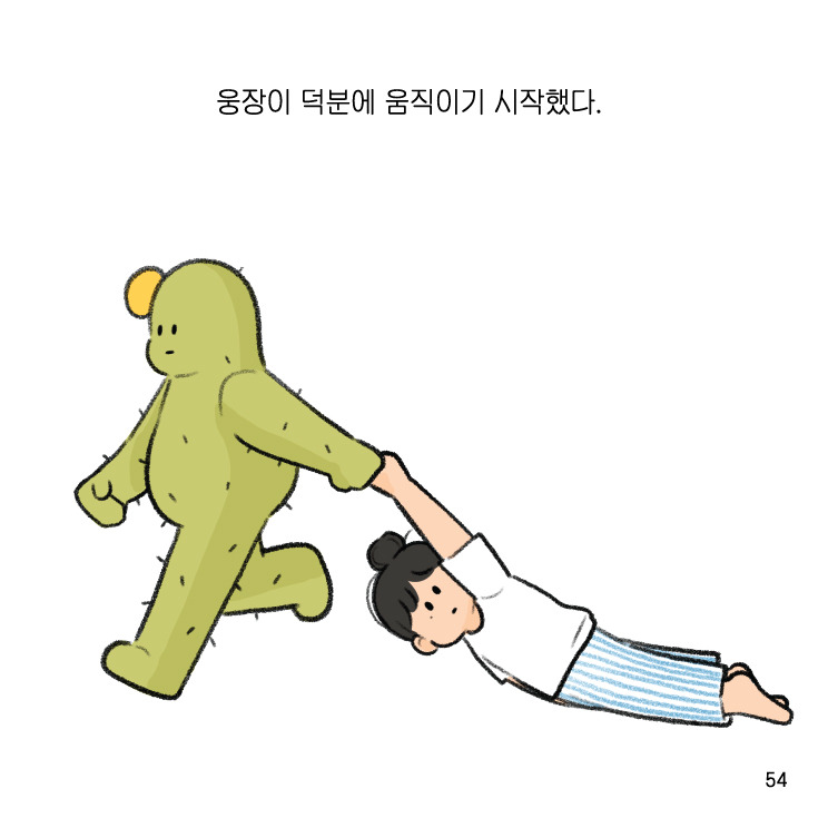 그때는 펀딩이 잘된 것만으로도 행복했는데, 지금 돌이켜보면 크게 고민하지 않고 만들었던 웅바나가 웅장이의 서브 캐릭터가 되어 두 캐릭터의 작가로 9년째 살아가고 있다는 사실이 새삼스럽다. 방어적으로 겨우 이어 나가던 작업 속에서도 또 하나의 좋은 기회가 주어졌던 셈이다. 아빠가 하늘에서 날 응원해 준 걸까? 말도 안 되는 생각이지만, 괜히 그렇게 믿어보고 싶을 만큼 그 시기에는 하는 일마다 잘 풀렸던 것 같다.