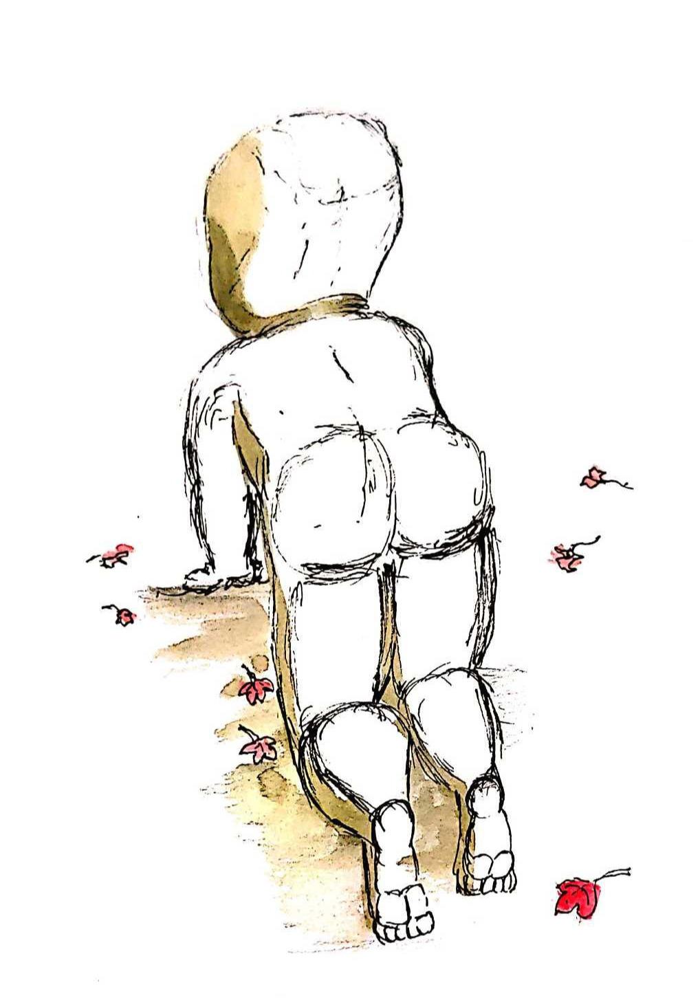 공원에 놓인, 다비트 체르니의 ‘엉덩이 깐 아기’ 부조.