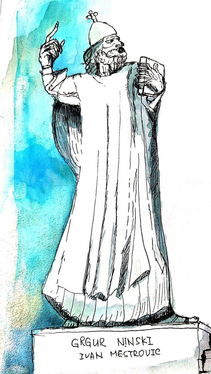 숙소에서 받은 종이 지도를 펼치고 도시의 생김새를 가늠하느라 발만큼 눈이 바쁜 시간, 사람을 사귀듯 여행하는 도시의 처음은 물샐틈없이 깍쟁이 같다가도 살아낸 과거를 알아가다 보면 제법 친숙해진다. 그런 면에서 스플리트는 매우 사교적이어서, 숙소 가까이 북문에 놓인 8.5m 그레고리우스 닌 동상이 까막눈이라도 지나칠 수 없는 큰 인사를 건넸다.