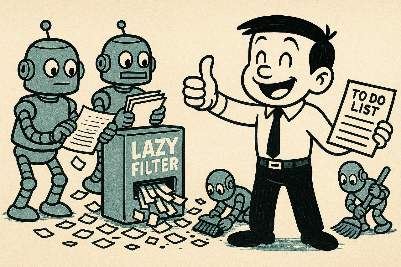 이 글은 Lazy Filter 3가지 질문을 통해 AI에게 맡길 업무를 분류하고,