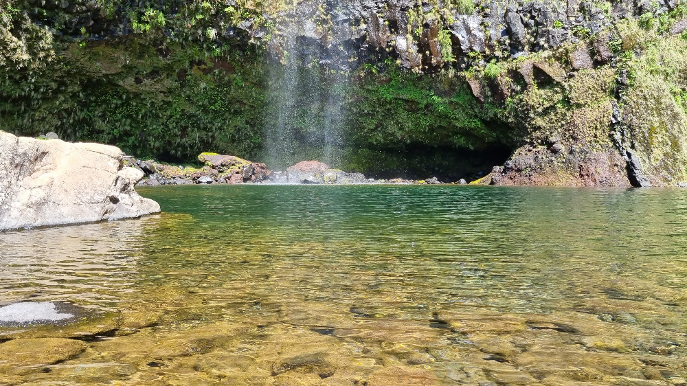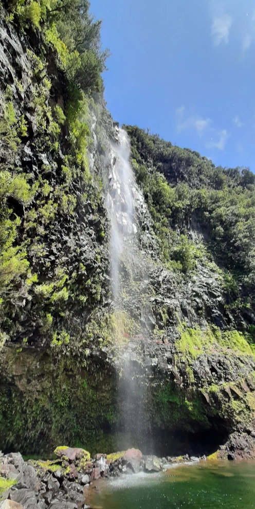 하지만 우리는 조금 더 힘든 하이킹 코스를 계획하고 있었다. Levada das 25 Fontes는 앞서 설명한 Levada를 포함해 산의 갚은 계곡에 있는 Risco 폭포까지 이어지는 하이킹 코스이다. Levada의 끝 지점쯤에서 산의 계곡을 향해 내려가면 Risco 폭포가 나온다. 이 하이킹 코스는 Levada에서부터 Risco 폭포까지 25개의 작은 폭포와 샘을 보여 준다고 한다. 이 하이킹 코스는 4시간 정도가 소요된다고 하는데 평소 예상 소요시간보다 두 시간은 더 걸리는 우리의 발걸음으로도 4시간 정도 걸렸으니 난이도는 결코 높지 않다. 총 이동 거리는 11km 정도이고 대략 350m를 오르내리게 된다. 이 하이킹은 산의 정상에서 시작하니까 거의 내리막 길인데 하이킹 코스 중간에 Risco 폭포를 보기 위해 내려갔다고 되돌아오는 길이 가장 경사진 오르막 길이고 때문에 가장 힘든 구간이다.