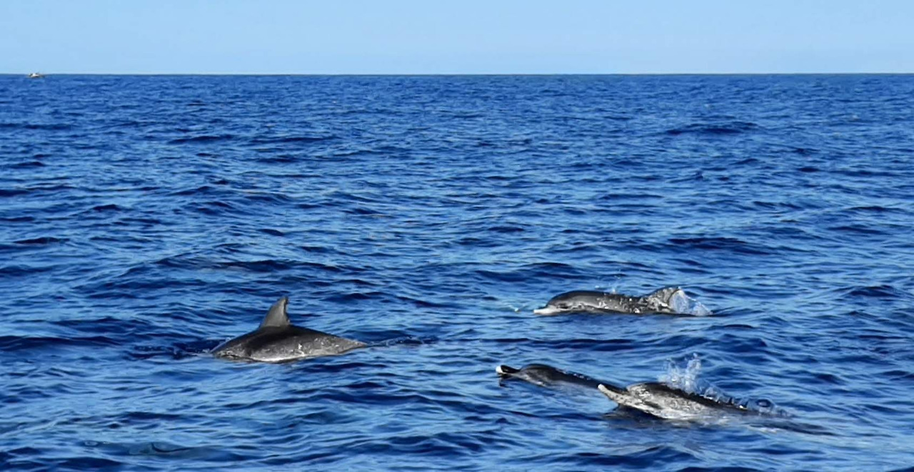 마데이라 여행 둘째 날의 일정은 미리 예약해 둔 돌고래 와칭 투어로 시작되었다. 아침 9시에 다른 참가자 8명과 함께 스피드 보트에 타고 마데이라 섬 남쪽으로 약 한 시간 정도 떨어진 곳에서 spotted dolphin떼를 만났다. 이 돌고래들은 스피드를 즐기는 성향이 있어서 무동력 상태로 미끄러져가는 스피드보트 주변에 몰려들곤 한다. 돌고래 투어에 참여하기 위해 지켜야 하는 규칙은 간단하다. 돌고래들을 만지지 말고, 먹을 것을 주어서도 안되며, 큰 소리를 내어서도 안되고, 돌고래들과 오래 머물러서도 안된다. 돌고래들이 인간들에게 길들여지지 않도록 하기 위해 만들어진 규칙같다.