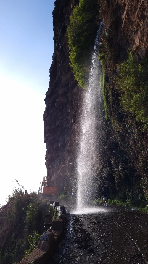 하이킹을 마치고 늦은 시간에 숙소로 향하며 마지막으로 Ponta do sol이라는 곳에 들렸다. 이곳에도 낙석으로 폐허가 된 도로가 유명한데 폐허 자체는 어제 일정 중 우연히 발견한 폐도로만큼 세기말적인 모습이 아니었다. 대신에 이곳은 폐도로 위로 쏟아지는 폭포가 유명하다.