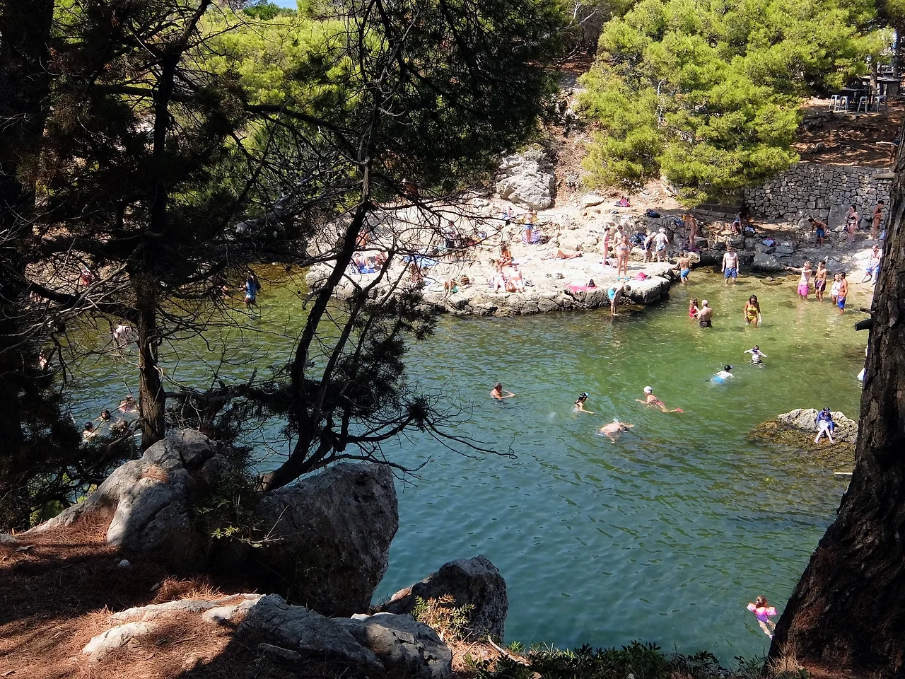 관광객의 홍수가 일어나는 시즌의 여행은 언제나 여러 가지 이유로 즐겁지 못하다. 그래서 항상 조금이라도 사람이 적은 곳을 찾아보는데 두브로브니크에서 온종일 시간을 보내기로 한 이상 그런 곳을 찾을 방법이 없었다. 그래서 제법 비싼 페리 요금 때문에 갈까 말까 망설였던 로크룸(Lokrum) 섬에 갔다 오기로 했다. 섬이라고는 해도 두브로브니크에서 눈으로 선명히 보이는 위치에 있다. 두브로브니크의 올드타운보다는 사람의 수가 적었지만 이곳도 북적이기는 마찬가지였다. '왕좌의 게임' 촬영지로도 유명한 이 섬에서 한 시간 정도 짧은 하이킹을 하고 숲 속에 만들어진 자연풀장에 발을 담그고 한참을 쉬었다. 바위에 한참을 걸터앉아 있다가 점심을 거른 것을 심히 후회하게 되었다. 마야 집 근처의 핫도그 집에서 팔던 커다란 고기가 들어간 샌드위치가 눈앞에 아른거렸다. 결국 다시 성벽 안의 구시가지로 돌아가서 뭐라도 먹겠다는 마음으로 다시 배에 올랐다. 구시가지에 도착하니 점심시간이 금방 지난 시간이었다. 아주 작고 작은 골목에 들어가 가벼운 샐러드와 커다란 아이스크림 후식을 먹고 오늘 석양을 보기로 했던 Srd 산으로 가는 케이블카를 찾아 발걸음을 옮겼다.