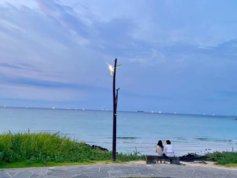 그래서 나는 제주도만 오면, 뭐랄까? 황송한 심정이 된다. 갯벌도 아니고, 비린내 나는 항구도 아니고, 암석으로 뒤덮인 우중충한 바다도 아닌... 그야말로 에메랄드 빛 바다와 백사장이 파노라마처럼 펼쳐진 뷰를 합당한 대가도 치르지 않고 누리는 것 같아서다.