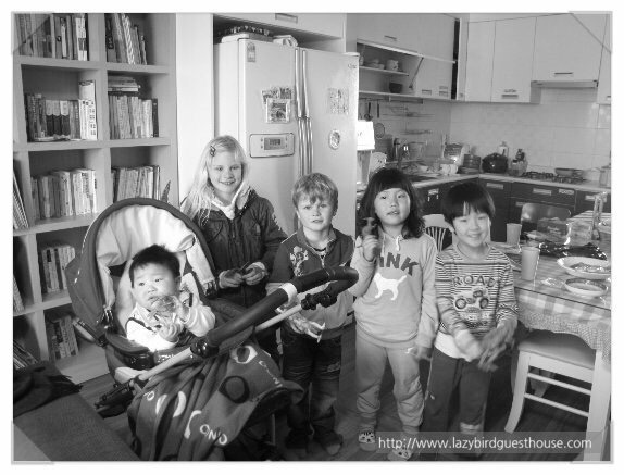 사람들은 어떻게 어린 아이 둘을 키우며 혼자 게스트하우스를 운영하냐고 했지만, 나는 힘든 기억보다 즐거웠던 기억이 더 많다. 내가 빨래와 청소, 다림질을 하는 동안 아이들은 거실을 오가며 손님들과 어울렸다. 다양한 나라에서 온 손님들은 서로 번갈아가며 아이와 공놀이를 했고, 마당에서 유모차를 끌며 보모 역할을 자처했다.