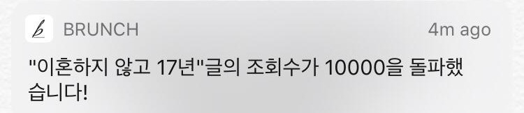 두 번째 글 '왜 나는 가난한 남자와 결혼했는가?'에 비해 '쌍꺼풀 진한 남자'의 조회수는 거의 십 분의 일도 안 되게 떨어진다. 글이 잘 보이는 곳에 노출되는 것도 중요하지만, 확실히 조회수를 가름하는 것은 제목이 아닌가 싶다. 특히 브런치의 경우 홈 화면의 구성이 손가락으로 휙휙 넘기기 좋게 되어 있어, 내 글이 운 좋게 노출되더라도 제목이 눈에 들어오지 않으면 열어보지 않게 된다. 만약 '이혼하지 않고 17년'이란 제목 대신, '결혼 생활 17년'이라고 썼으면 이 글을 만 명이 넘게 클릭했을 리 없다는데 십만 원을 건다.