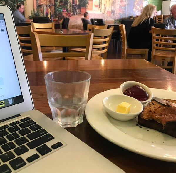 호주에 3년 넘게 사는 동안, 따로 부탁하지 않았는데 메뉴판과 함께 시원한 물을 먼저 한 잔 주는 카페는 이 곳이 처음이다. 그래서 나는 이 카페의 느리디 느린 인터넷 속도를 온화한 마음으로 받아들이기로 했다. 어느 정도로 느리냐면, 클릭을 한 뒤 화면을 응시하며 커피 두 모금과 토스트 세 입을 다 씹어 넘길 때쯤에야 간신히 다음 페이지로 넘어가는 정도의 속도다.