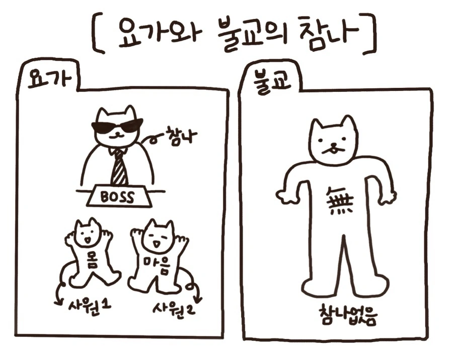 하지만 여기서 분명히 짚고 넘어가야 할 부분은, 요가와 불교가 참나를 바라보는 방식이 조금 다르다는 점이다.