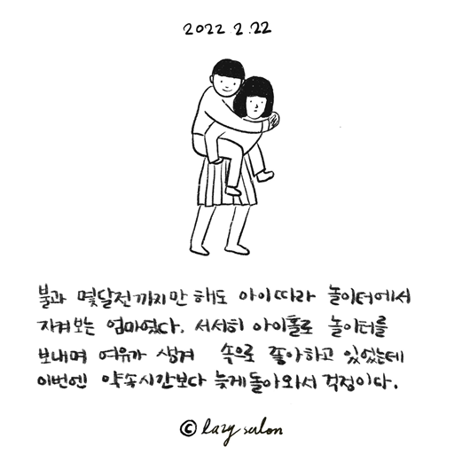 불과 몇 달 전까지만 해도 놀이터에서 아이가 노는 동안 지켜보며 기다렸다. 집에 오자고 하면 5분만, 10분 만을 외쳐서 어릴 때는 '미끄럼틀 세 번까지만 더 타고 가자' '엄마 너무 추워~' '집에 가서 밥 먹자~' 하고 데리고 오곤 했는데 요즘엔 혼자 가서 친구랑 놀다 들어온다. 아이 어릴 때 놀이터 따라다니는 게 당연한 거였는데, 작년에 보니 아이 친구들 중 혼자 오는 친구들이 많이 보이기 시작하면서 이제 분리의 시기가 왔음을 감지했다. 놀이터에서 만나던 아이의 친한 친구 엄마와도 서서히 '아이만 보낼게요~' 하고 시간 약속만 하고 보내는 일이 많아지더니 요즘은 당연하게 아이만 보내게 되었다. 오늘은 돌봄 수업이 끝나고 바로 친구들하고 놀이터에서 놀고 온다고 해서 집에 오고 있지 않으니 이제 서서히 아이도 홀로 서기를 하는 시기가 다가오는 것 같다.