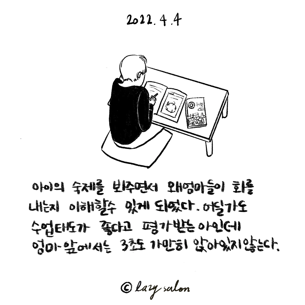 아이가 어릴 때는 TV에서 아이들을 기다려주지 못하는 엄마들을 이해 못 했는데, 지금은 충분히 이해한다. 나는 홈스쿨링은 절대 못하겠다고 생각했다. 아이에게 공부를 시키는 건 매우 어렵다.