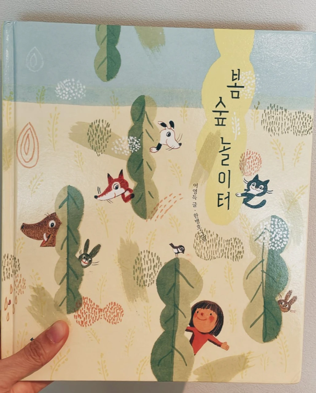 표지를 보면 주인공 아이와 숲 속 동물들이 숨바꼭질을 하듯 얼굴을 빼꼼 내보인다. 봄 숲에서 재미있는 일이 일어날 것만 같다.