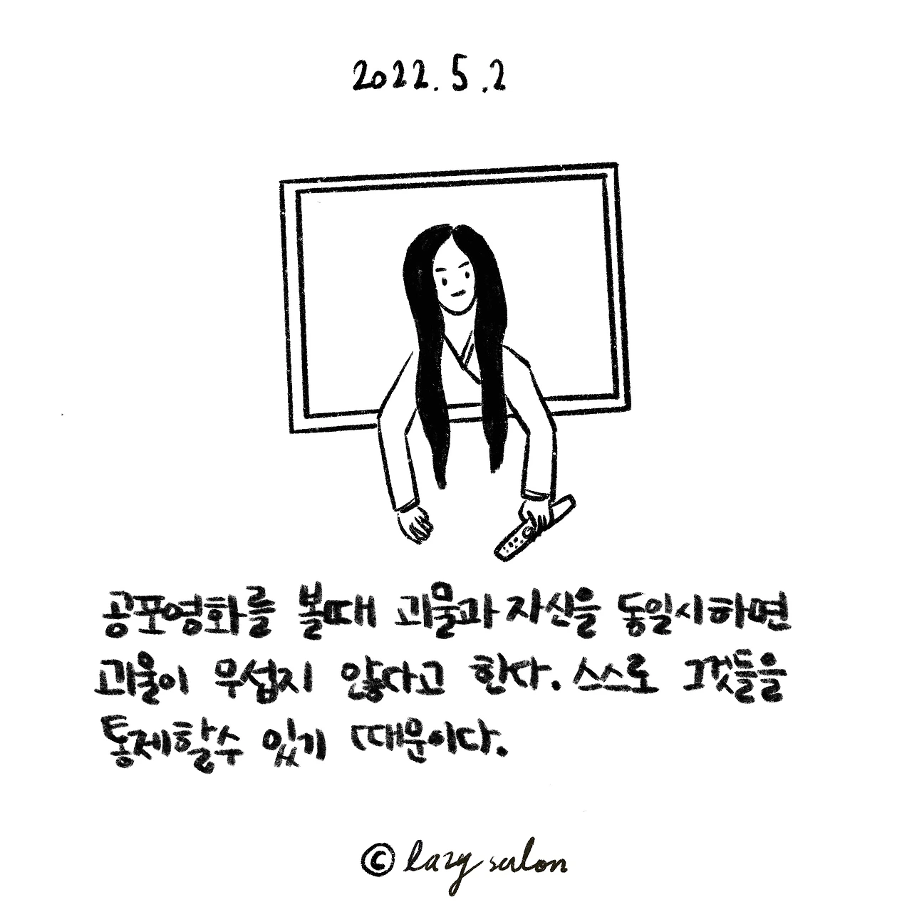 어렸을 때부터 공포영화를 보면 화장실 가는 것도 힘들었기 때문에 내가 스스로 미디어 선택이 가능해지고부터는 공포영화를 보지 않는다. 괴물과 나를 동일시한다고 해서 괴물이 안 무서워지지 않을 것 같다. 공포영화의 어둡고 으스스한 느낌은 내가 견디기 힘들고 괴롭기 때문이다. 내 귀하고 소중한 시간을 유쾌하고 재밌는 것만 보며 지내고 싶다.