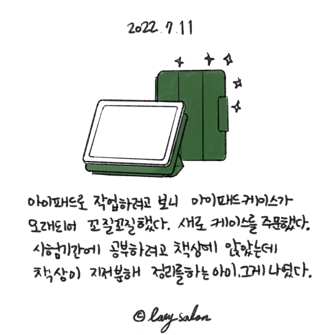 하도 허튼짓을 많이 해서 요즘은 내가 다른 길로 새고 있다는 걸 금방 감지한다. 아예 그 길을 가지 않거나 가더라도 잠시 갔다가 멈추려고 노력한다. 넷플릭스도 정말 보고 싶은 게 생기지 않는다면 의식적으로 켜지 않는다. 가끔 유튜브가 문제지만 그나마 짧은 영상들이라 다행이다. 의식적으로 노력해도 여전히 나의 습관은 살아있다. 새로운 습관이 고정된 습관을 이기려면 새로운 습관을 더 오래 해야 된다는 생각이 들었다. 새 아이패드 케이스로 작업에 더 몰입할 수 있길.