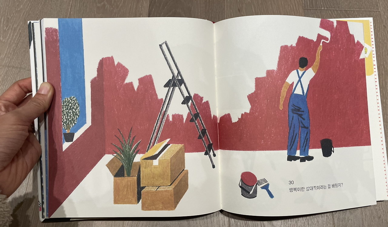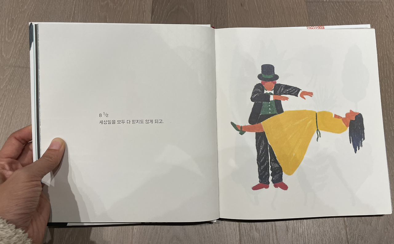 글과 일러스트가 너무 절묘하게 잘 표현해서 당연히 단일 작가가 글도 그림도 모두 그렸다고 생각했다. 그리고 제일 앞에 오는 이름만 기억하고 있어서 하이케 팔러가 일러스트레이터라고도 생각했다. 글 작가와 그림작가 중 비중이 누가 클까 잠시 생각했다. 글과 그림이 모두 좋았기 때문에 50:50의 지분이 있지 않을까 생각이 들지만 글 작가 이름이 먼저 쓰여 있고 나 또한 글 작가 이름만 기억하게 되었으니 아무래도 글 작가에게 지분이 더 있는 걸까 생각이 들어서 그림을 그리는 사람으로서 조금 아쉬움을 느꼈다.